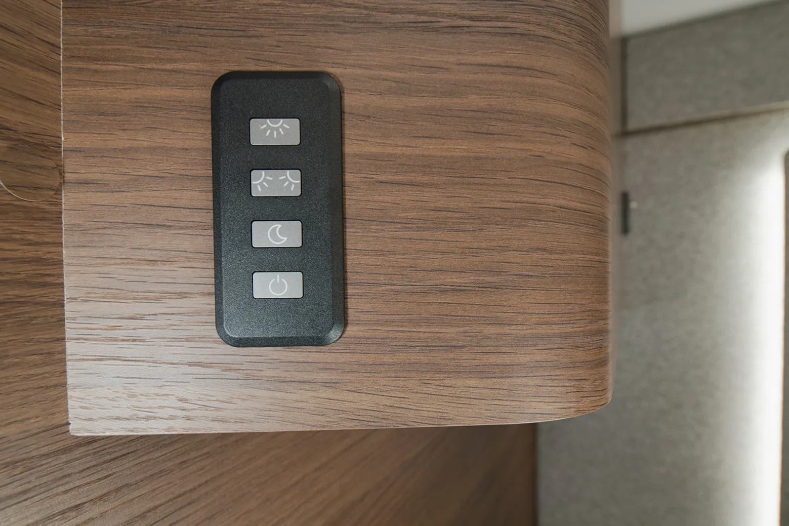 Il pannello di controllo digitale Adria offre un accesso semplice ed intuitivo al sistema di illuminazione e alle funzioni principali.