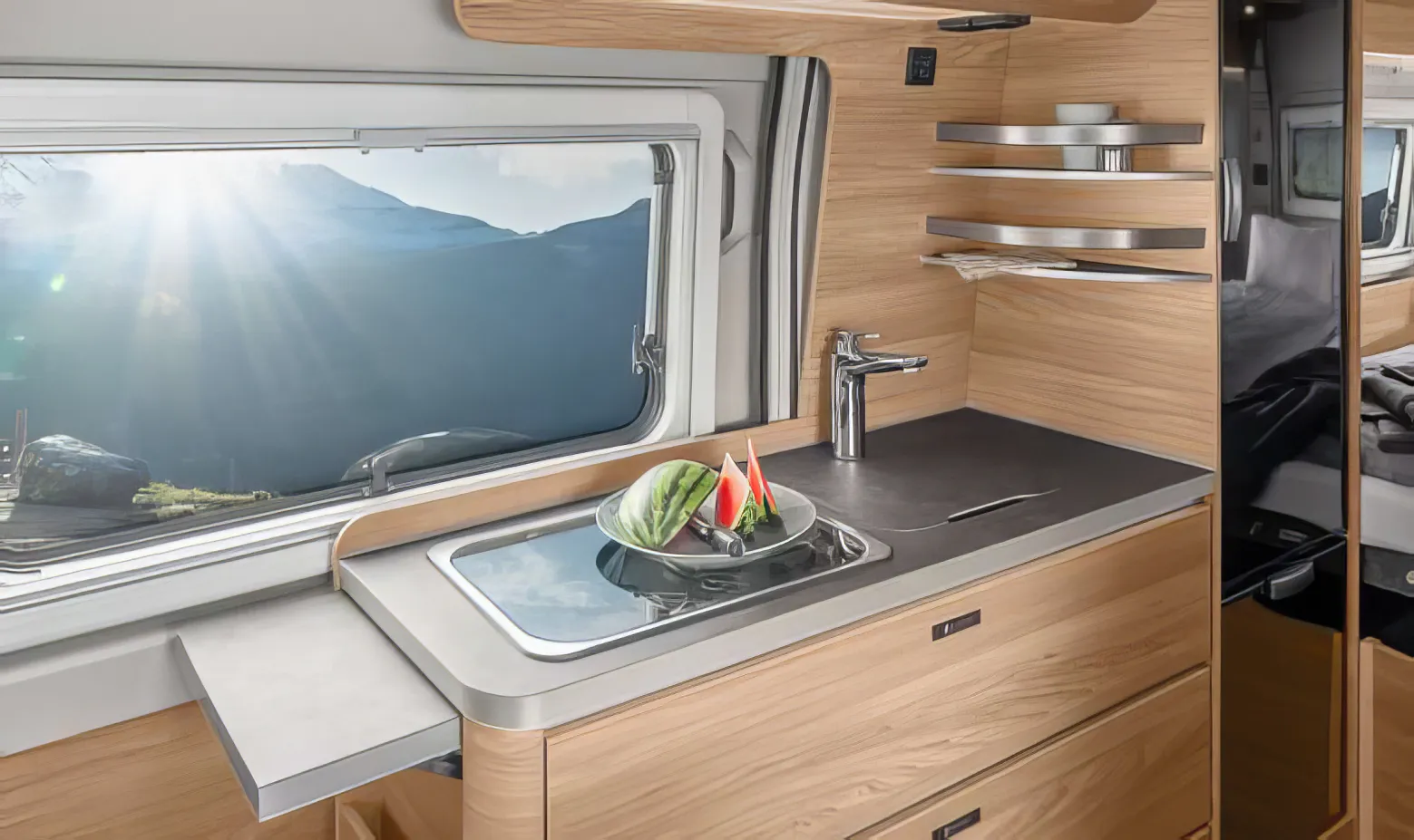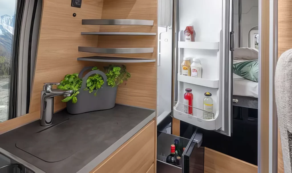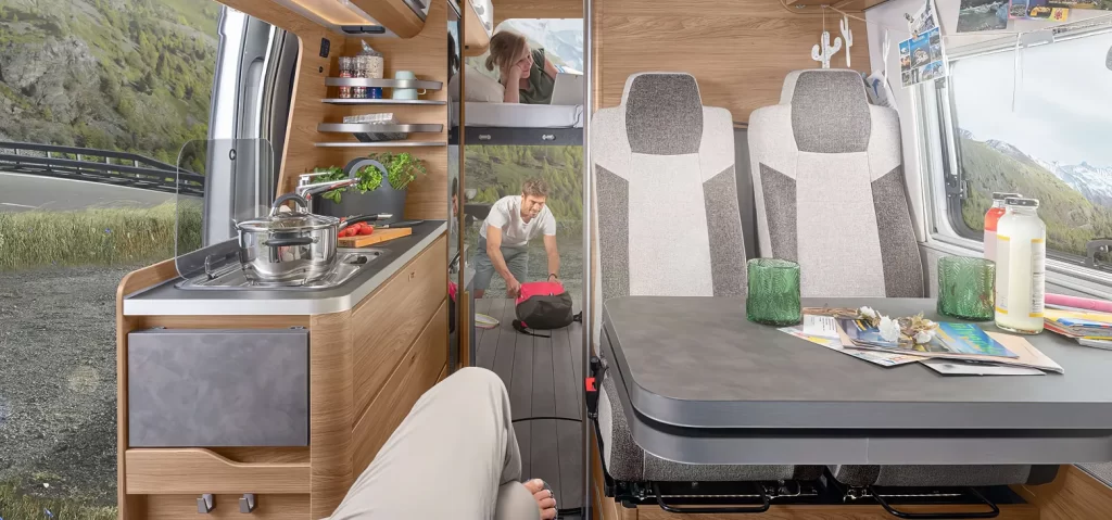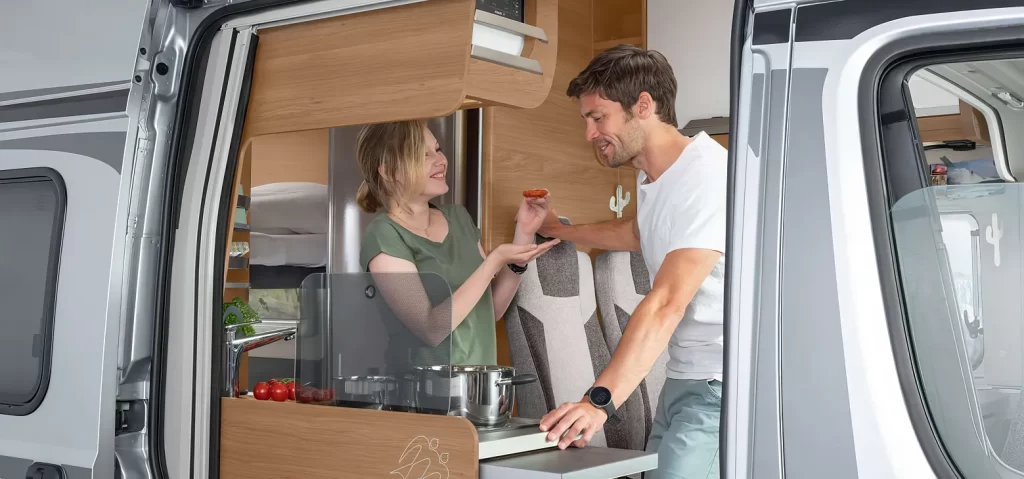 Perché nella cucina completamente attrezzata c’è tanto spazio per riporre, preparare e, naturalmente, gustare. Così anche una breve sosta durante il viaggio diventa un momento di piacere per tutta la famiglia.