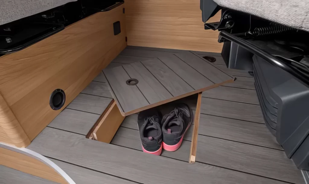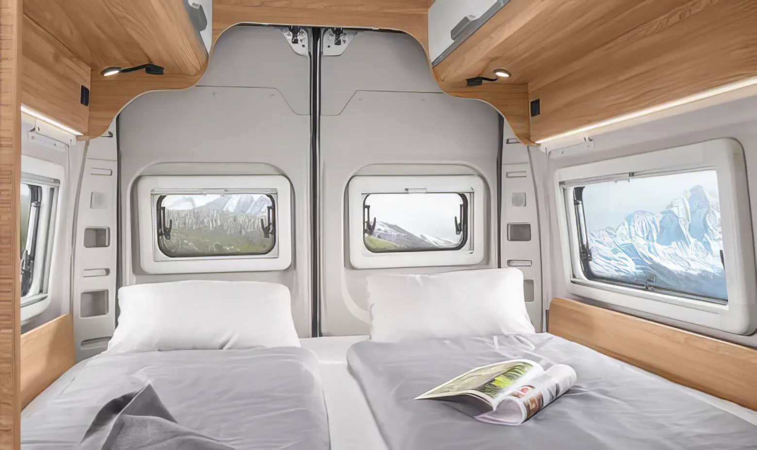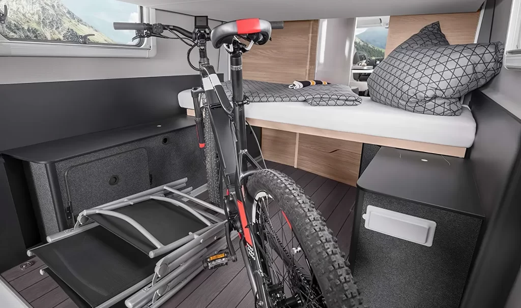 Un veicolo di nuova concezione per uno spazio di stivaggio ancora più grande Volume di carico di circa 2350 litri Letto basculante con regolazione manuale nella parte posteriore, versatile e resistente Riscaldamento a gasolio in serie per la massima autonomia di viaggio Letto basculante anteriore opzionale per fino a 7 posti letto Vano per il…