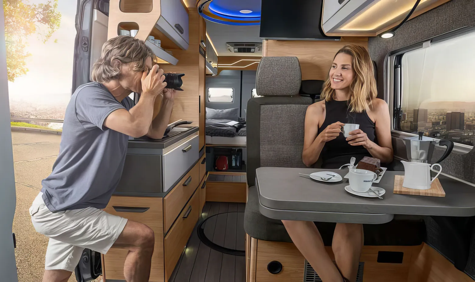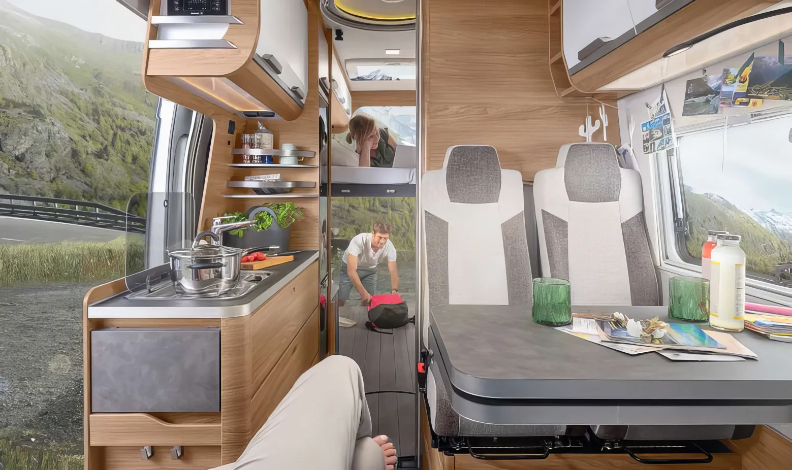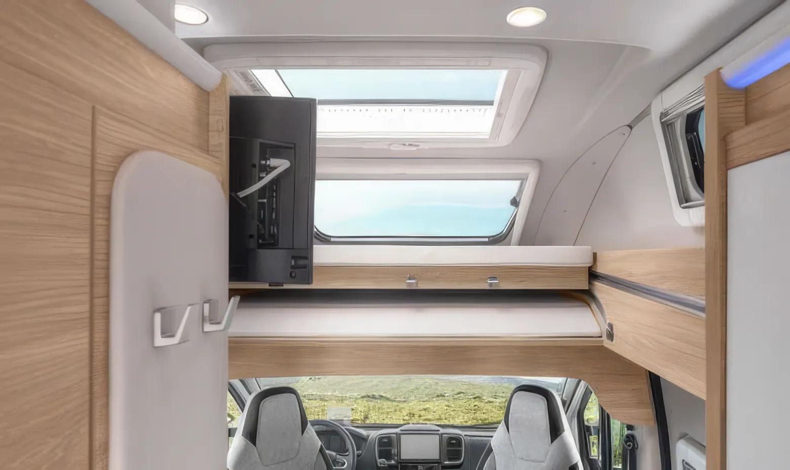 Tante funzionalità pratiche e interni del nostro camper van più spazioso convincono per il loro design moderno, i dettagli intelligenti e la lavorazione dei materiali di altissima qualità.La variante con tetto rialzato e struttura tetto aggiuntiva in vetroresina offre uno spazio gigantesco, con un’altezza interna fino a 238 cm.