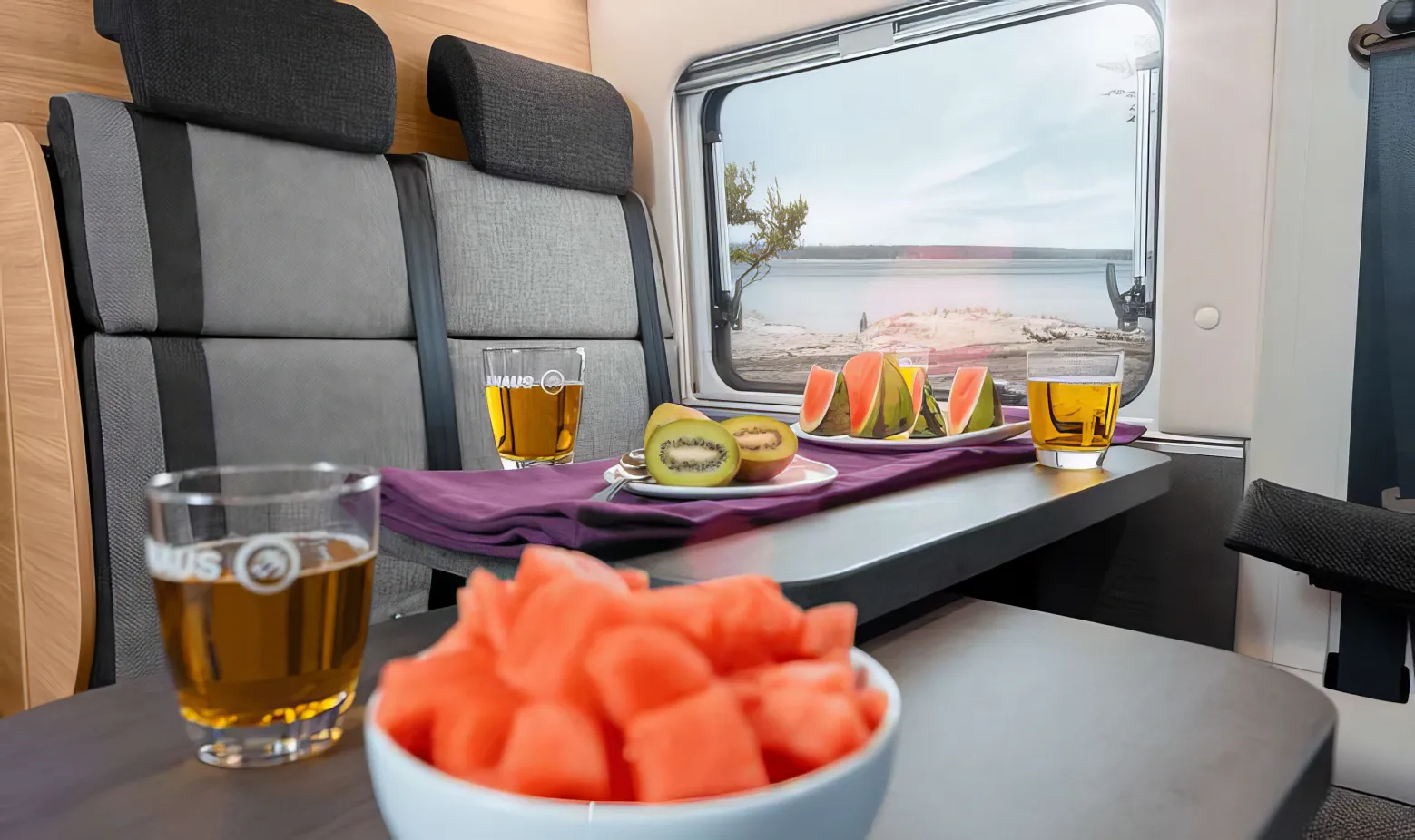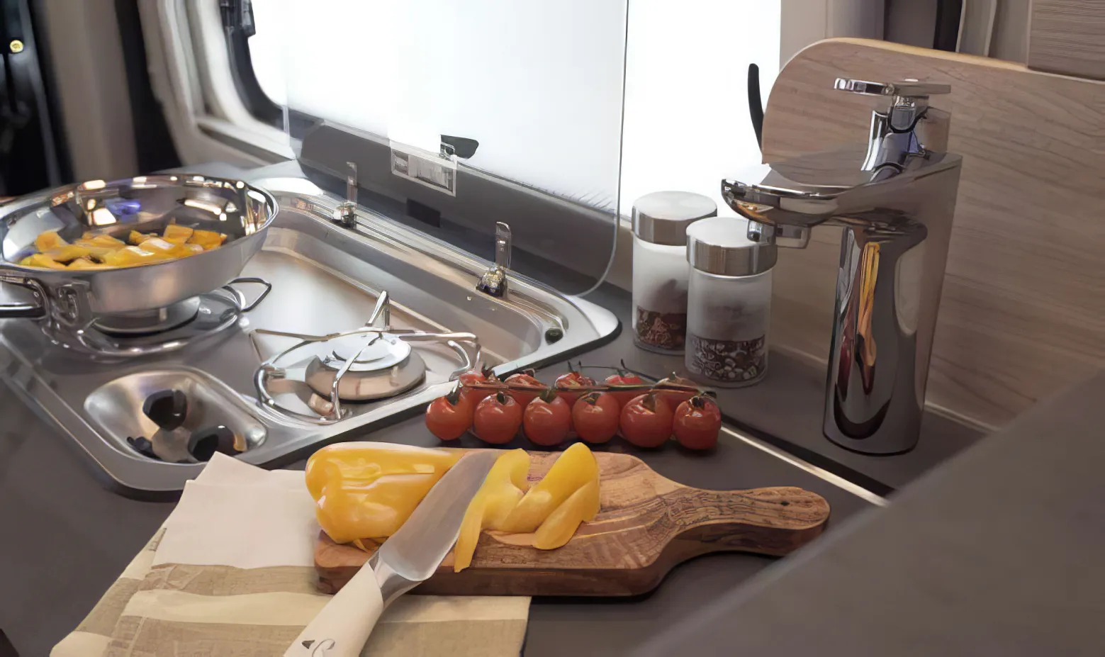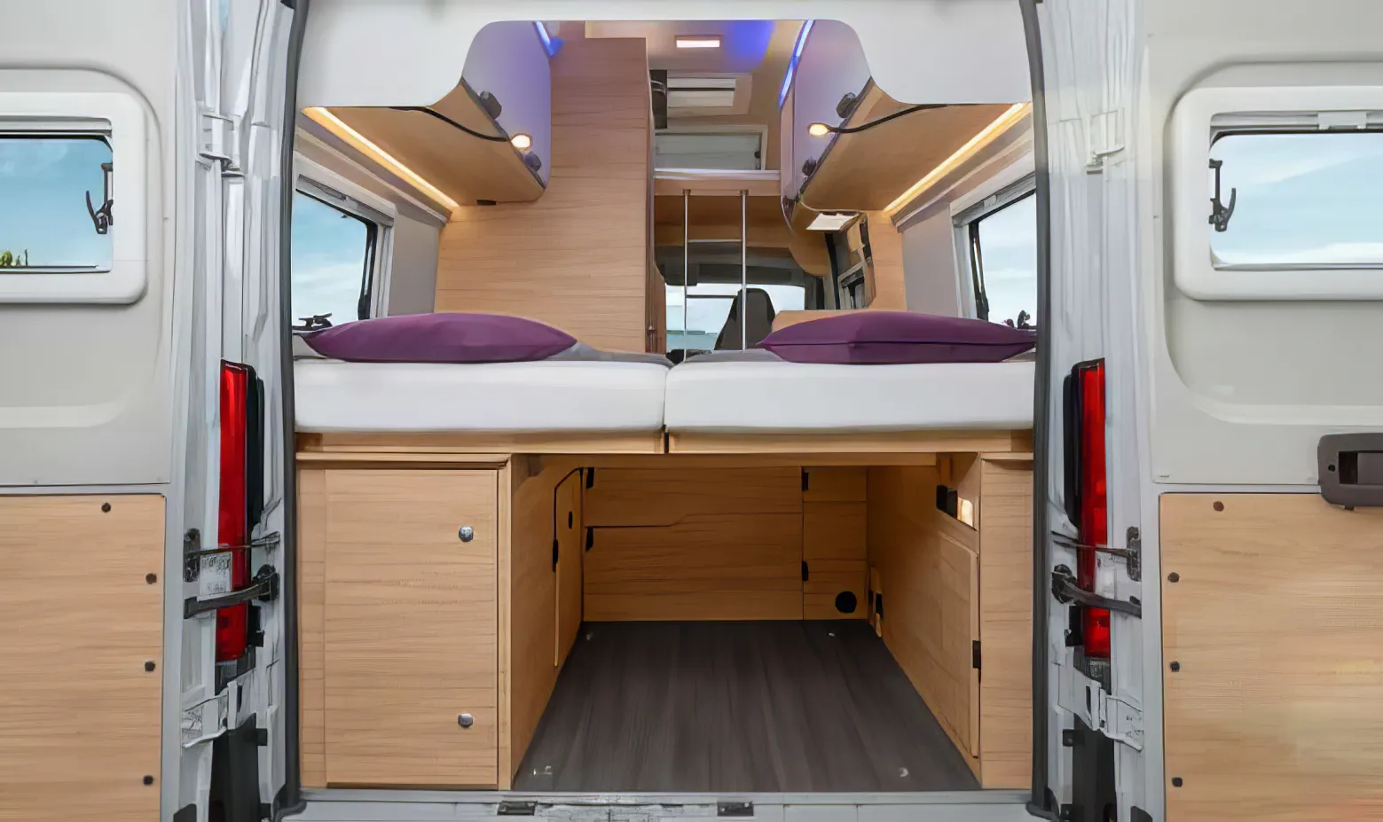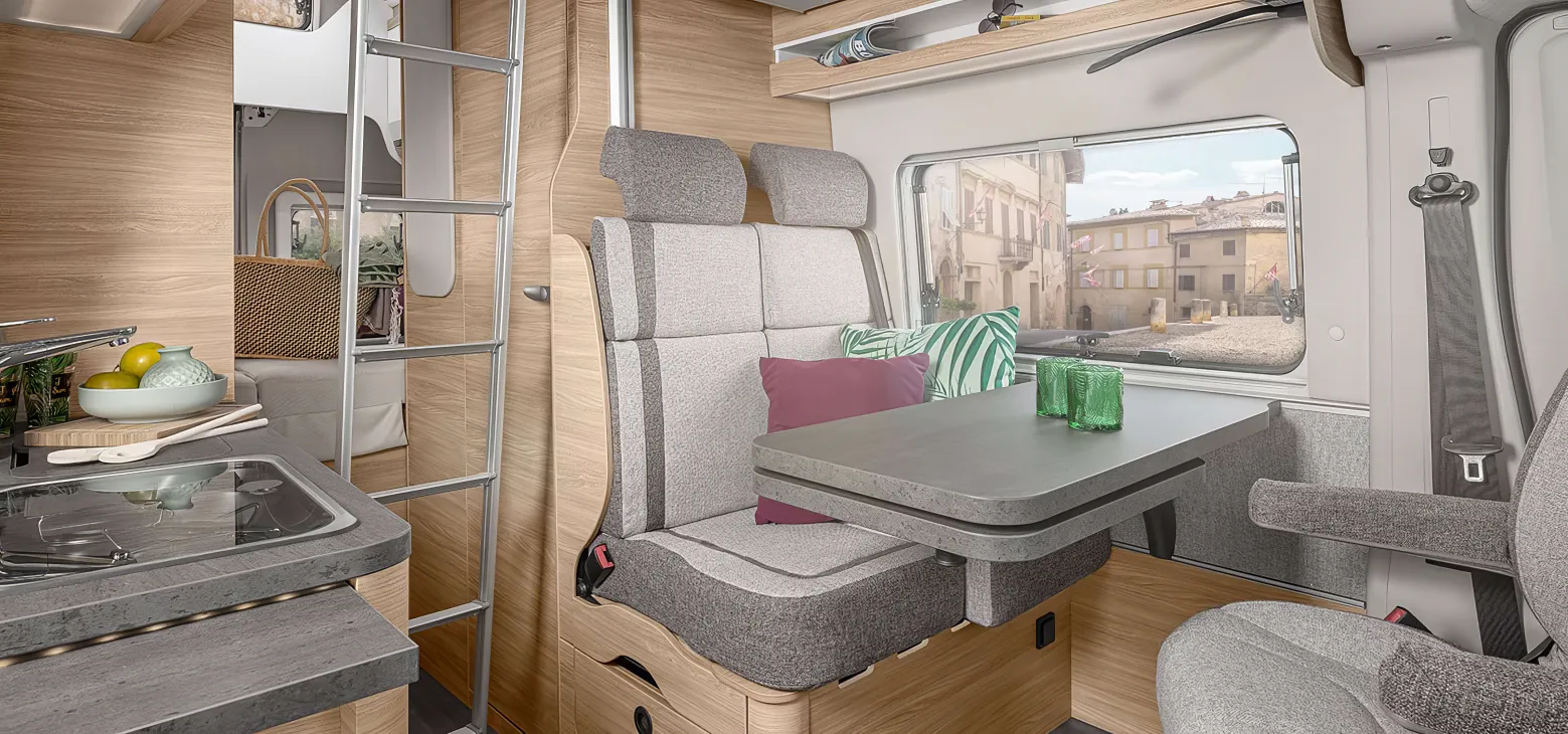 Tante funzionalità pratiche e interni del nostro camper van più spazioso convincono per il loro design moderno, i dettagli intelligenti e la lavorazione dei materiali di altissima qualità.La variante con tetto rialzato e struttura tetto aggiuntiva in vetroresina offre uno spazio gigantesco, con un’altezza interna fino a 238 cm.