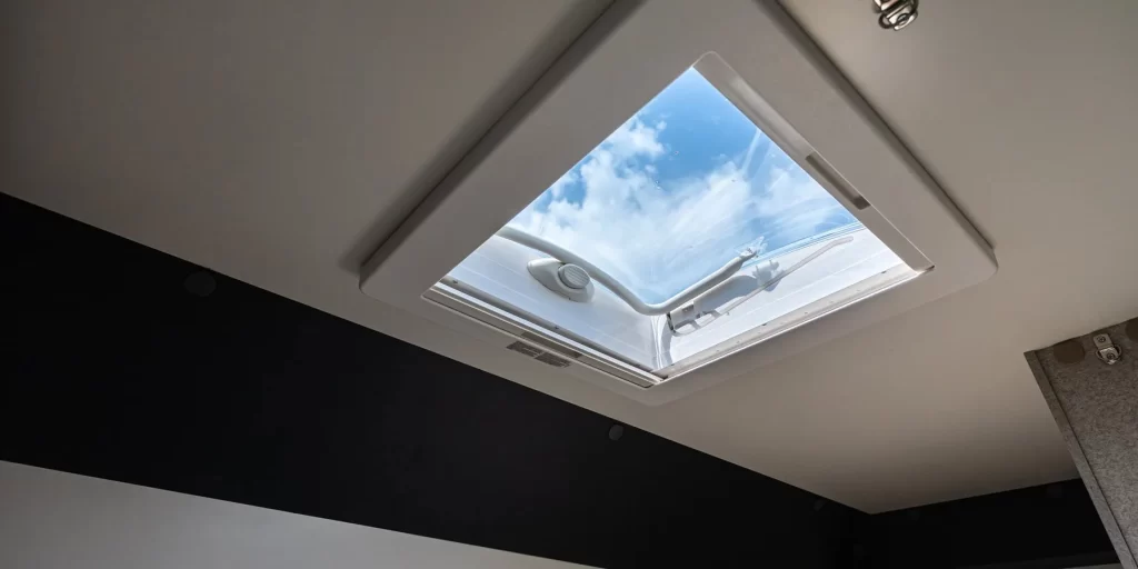 – Spessore del pavimento: 54 mm – Spessore del soffitto e delle pareti: 30 mm – Tetto esterno in vetroresina – Pareti interne/esterne in vetroresina – Area inferiore del telaio rivestito in vetroresina”