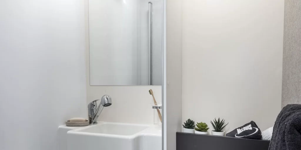 Doccia integrata con ante rigide pieghevoli e rubinetto estraibile