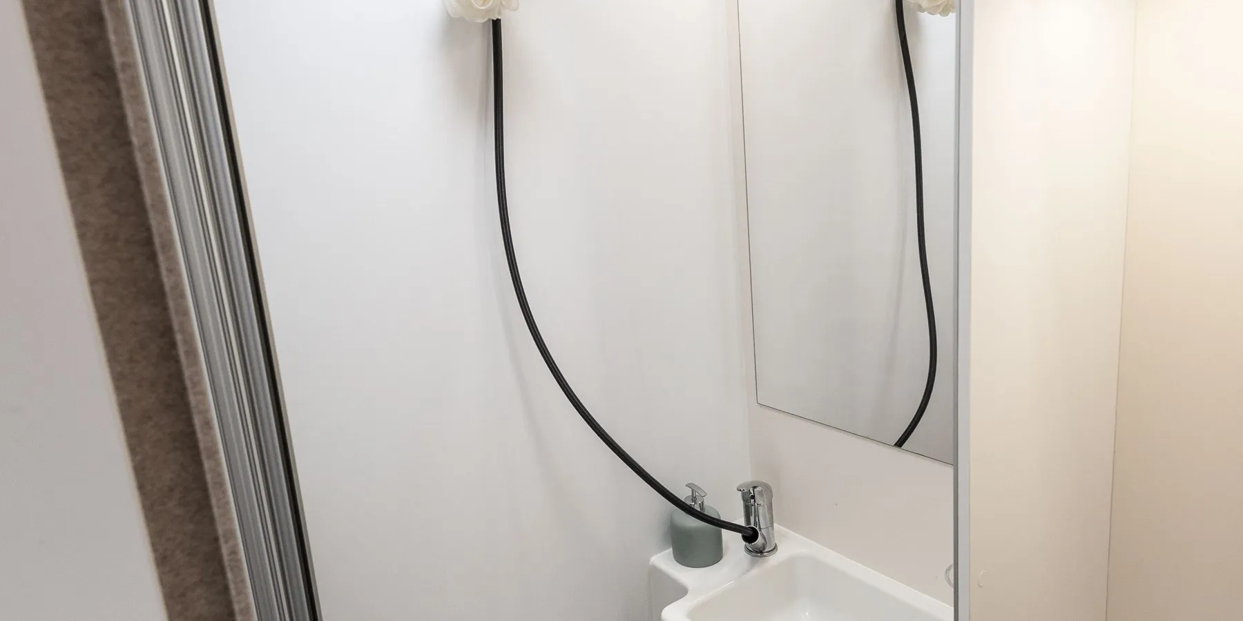 Doccia integrata con ante rigide pieghevoli e rubinetto estraibile