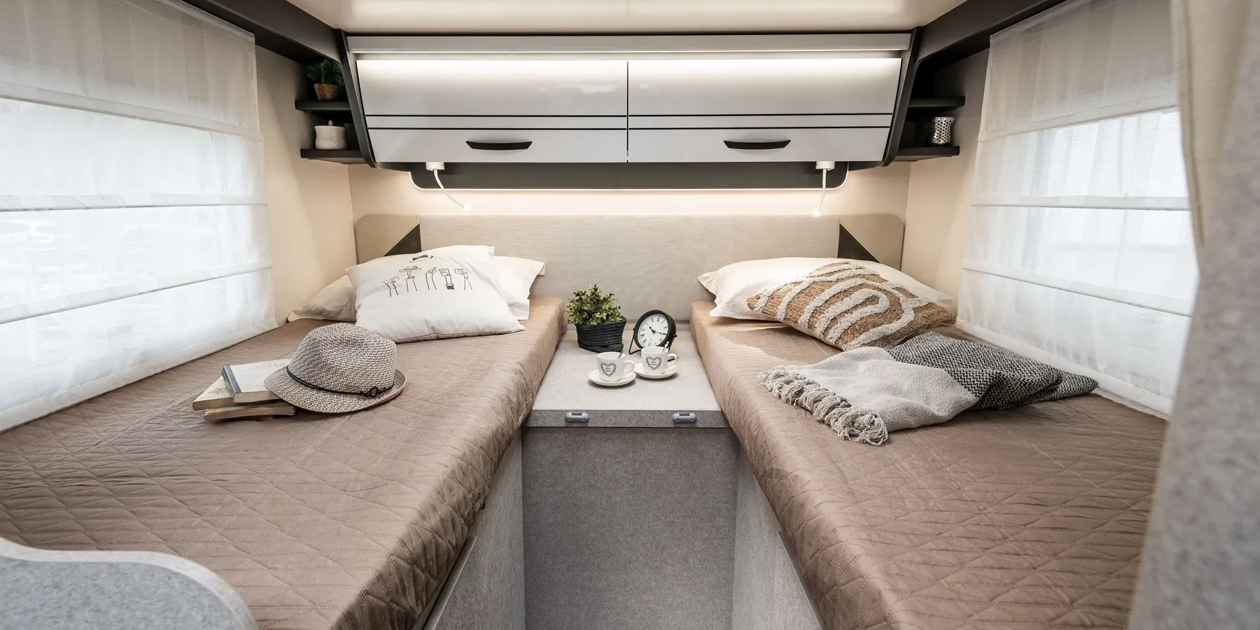 Profilato con letto basculante sotto i 7 metri di lunghezza · Letti gemelli trasformabili in maxi