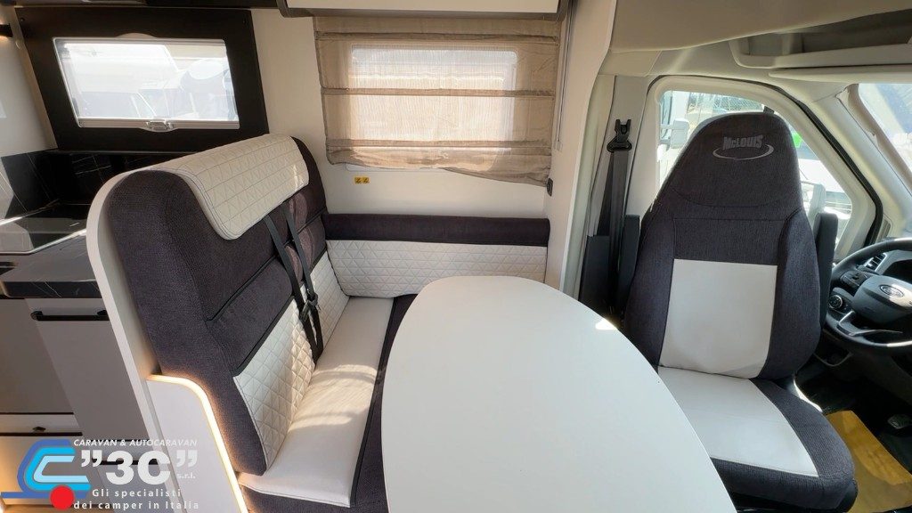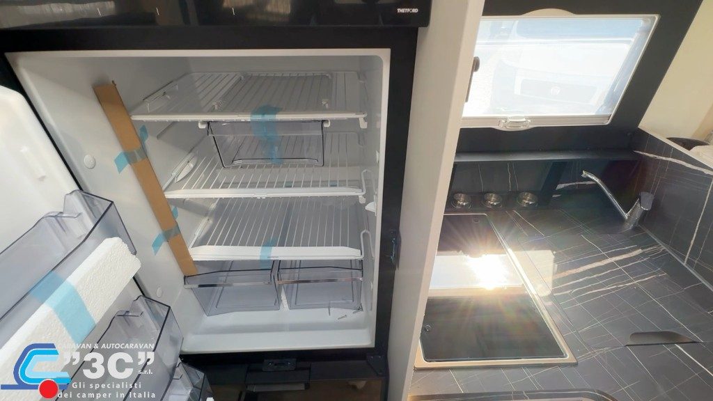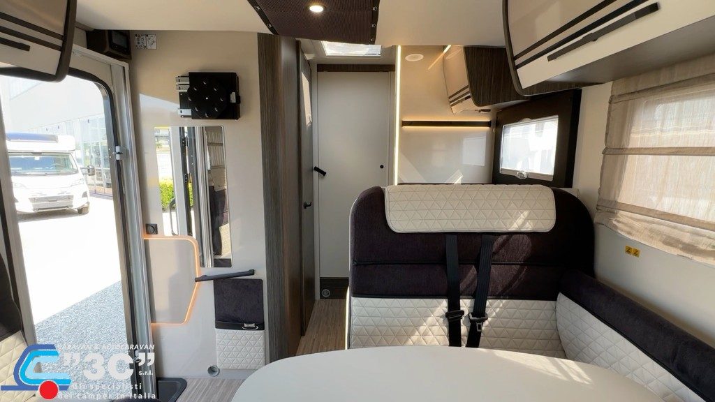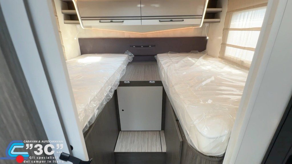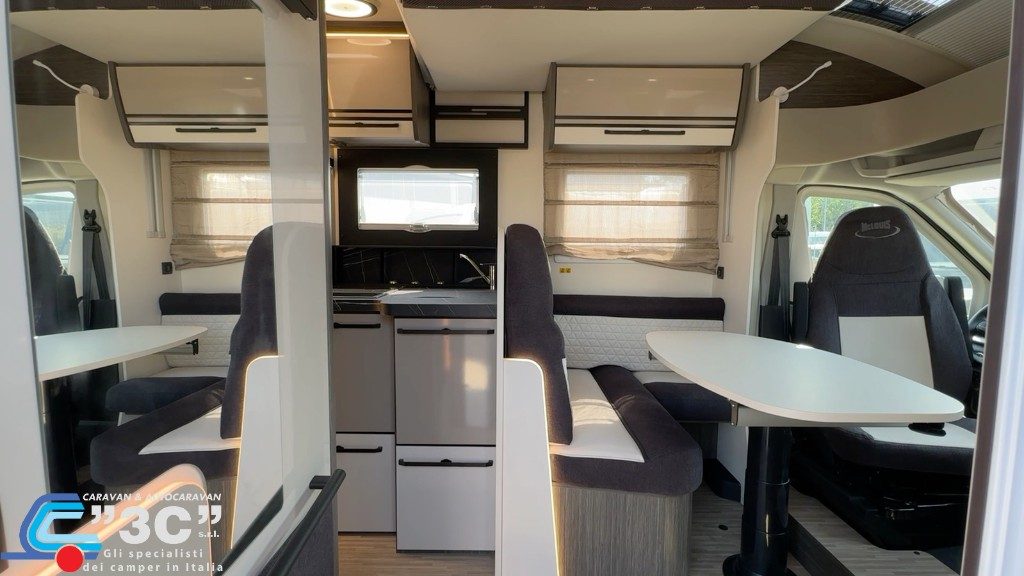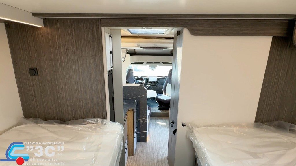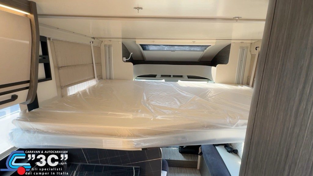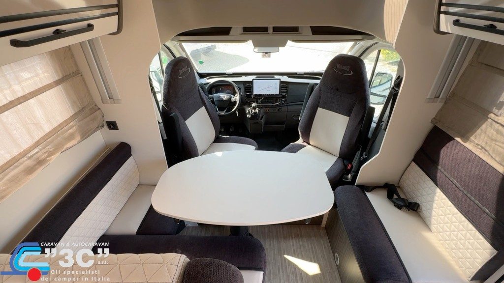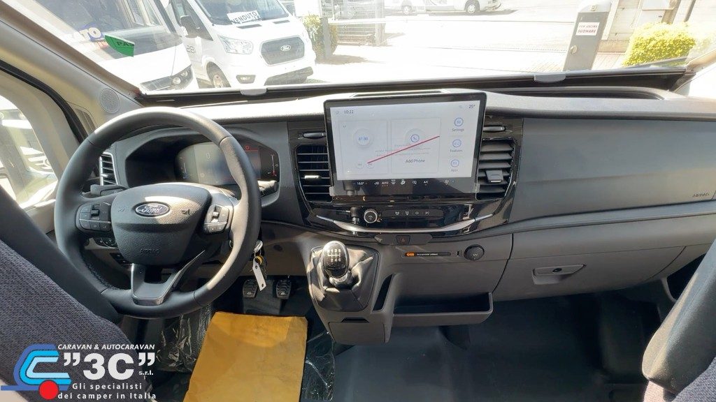 Pack Ford COMPRESO: meccanica da 165cv, Fari "Serie Alta" con luci di svolta statiche, Vano portaoggetti con serratura, Finiture cruscotto e "Trend", Paraurti e modanature laterali verniciati in tinta con la carrozzeria, Porta Cellula con 2 punti di chiusura, con finestra e chiusura centralizzata, Pannello solare da 200W con regolatore MPPT, Skyroof, Oscuranti cabina plissettati, Braccio di supporto TV, Coprisedili cabina.