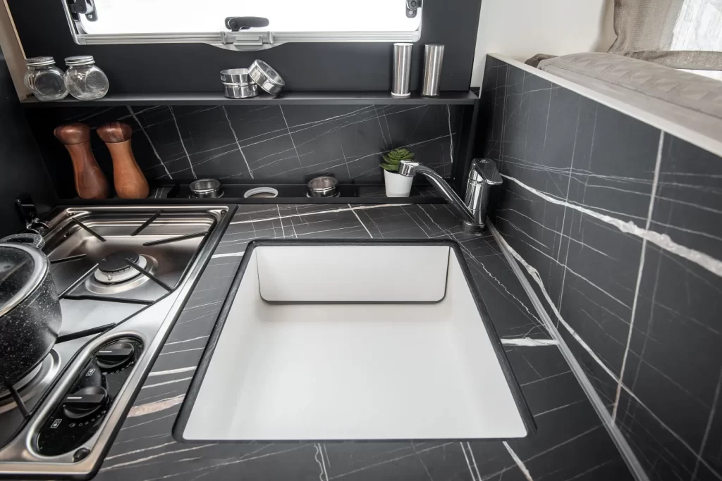 Lavello da cucina con scarico invisibile e porta spugna