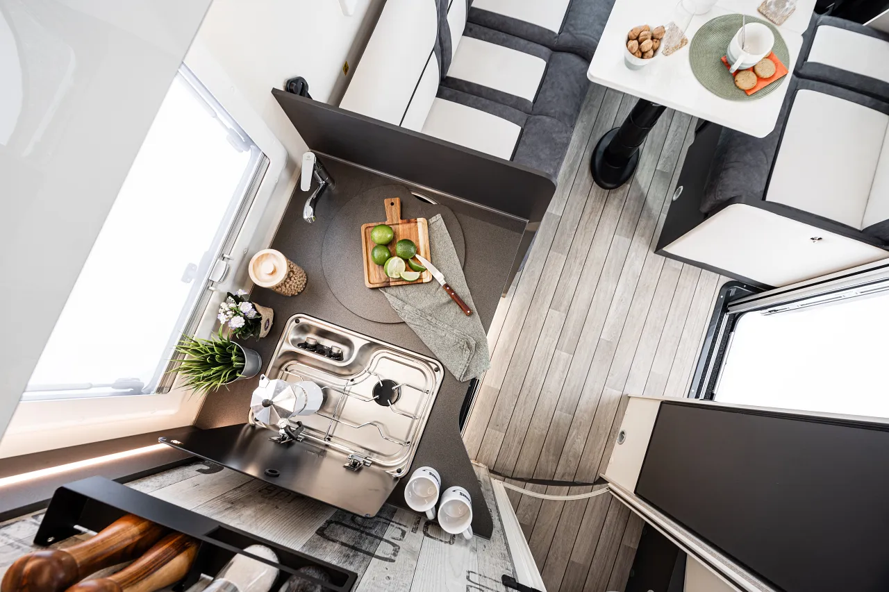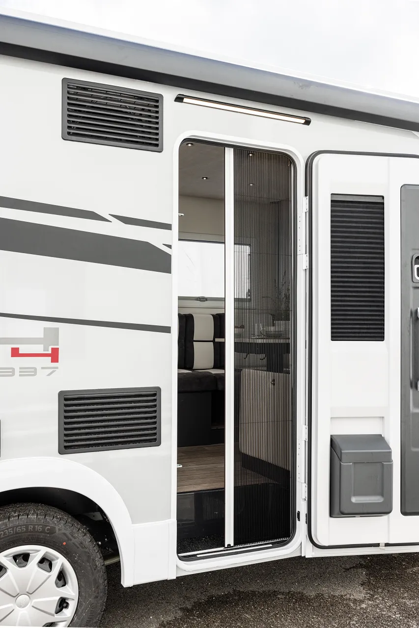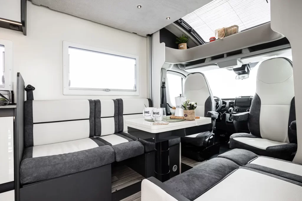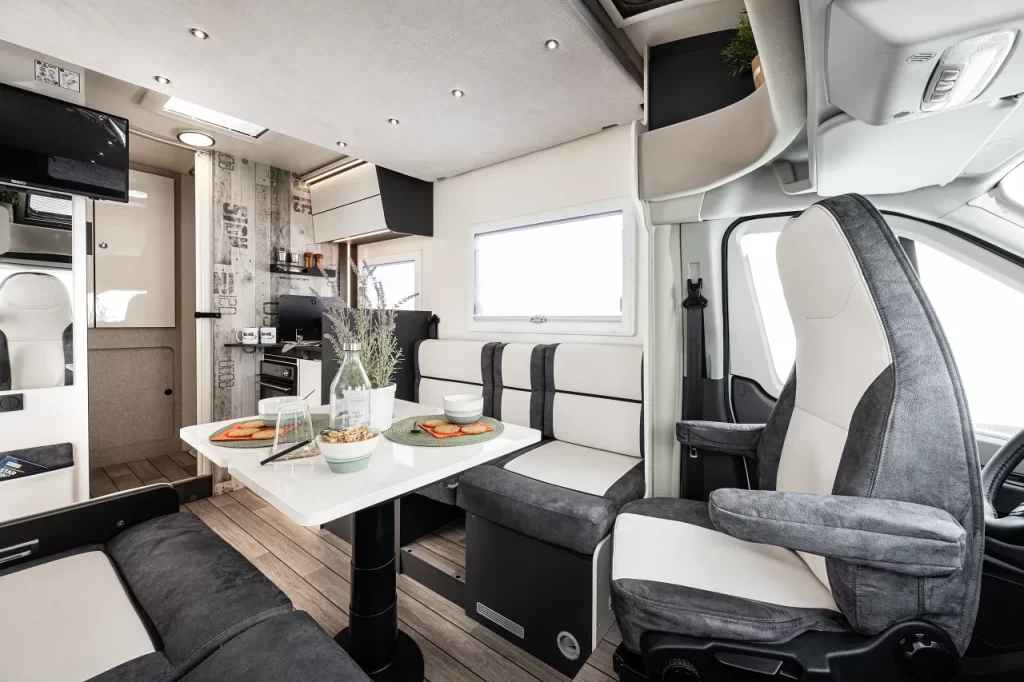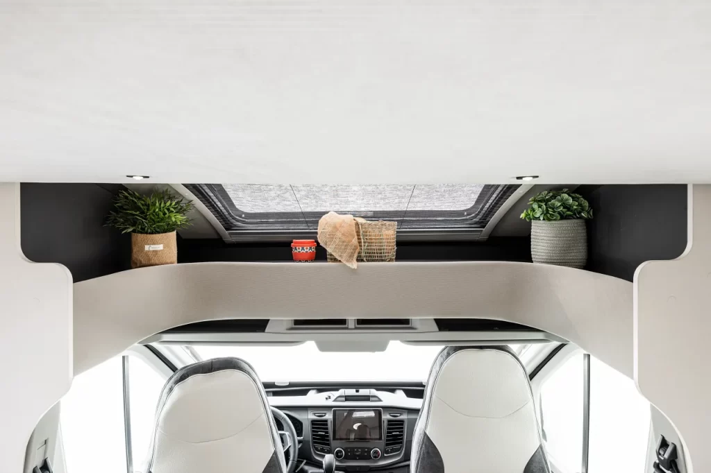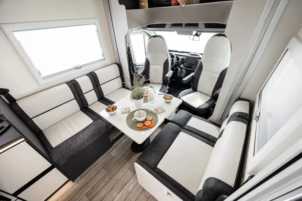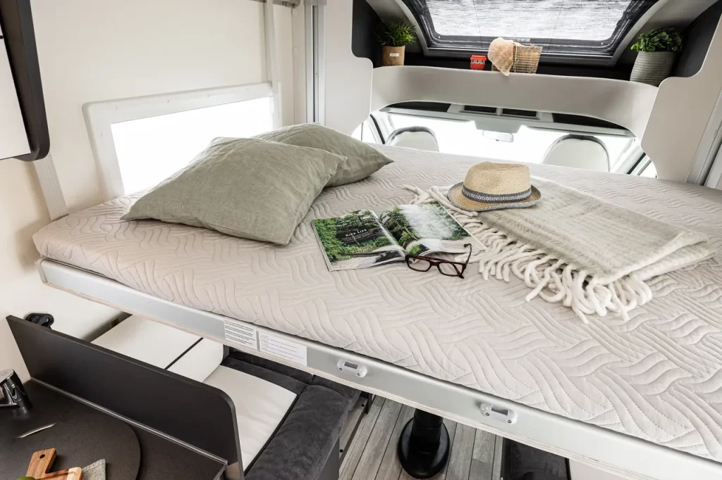 Profilato compatto con letto basculante 190 cm · Sotto i 6,5 metri di lunghezza · Maxi salone