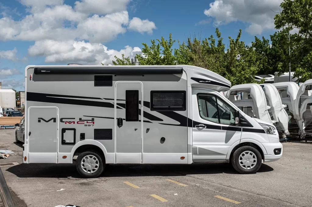 Il Semintegrale Mclouis Mc4 Slim 337, è progettato per ospitare fino a 4 persone, offrendo 2+2 posti letto. Dimensionato a 639cm di lunghezza, 215cm di larghezza e 285cm di altezza, con un peso di 3500 kg, assicura un ottimo equilibrio tra spazio interno e maneggevolezza. Con meccanica Ford, trazione Anteriore, cambio Manuale con 6 rapporti, alimentazione Diesel da 165 CV di potenza, garantisce viaggi lunghi, comodi e sicuri.