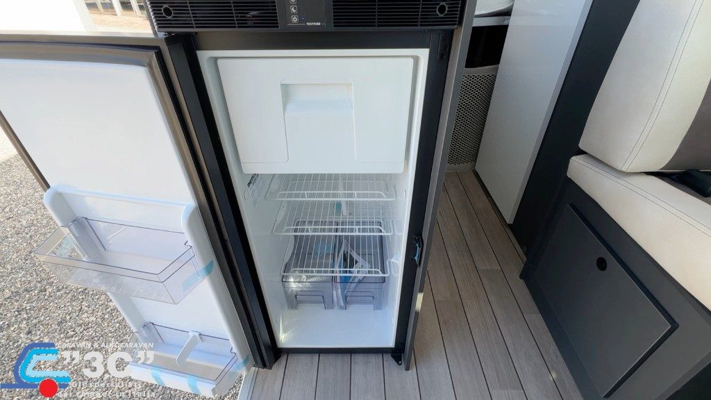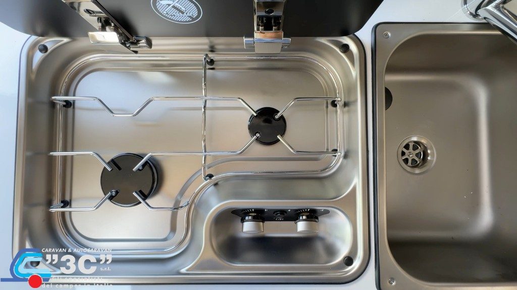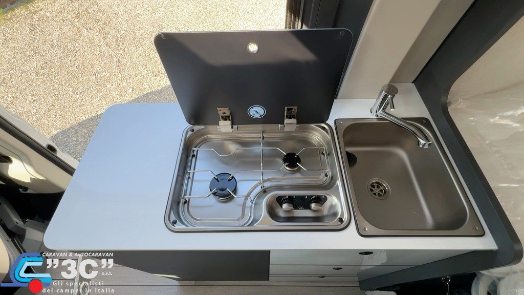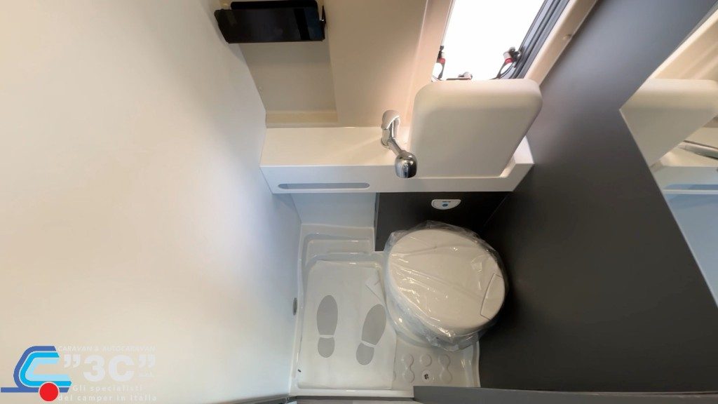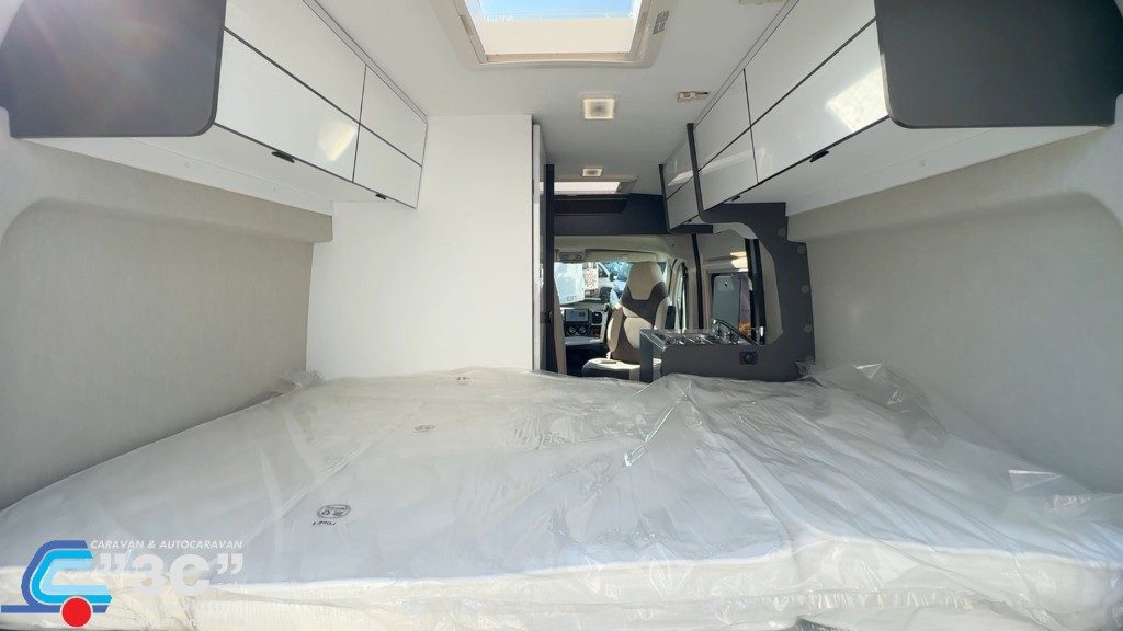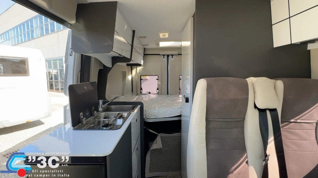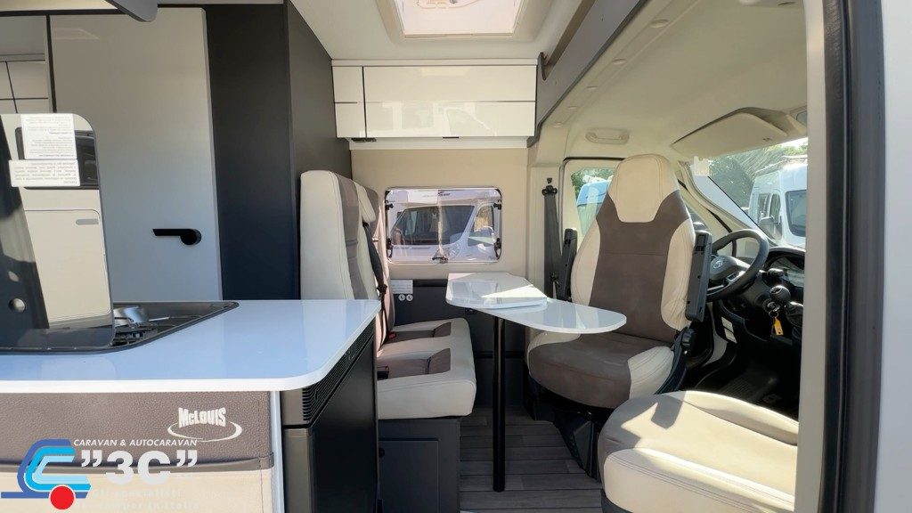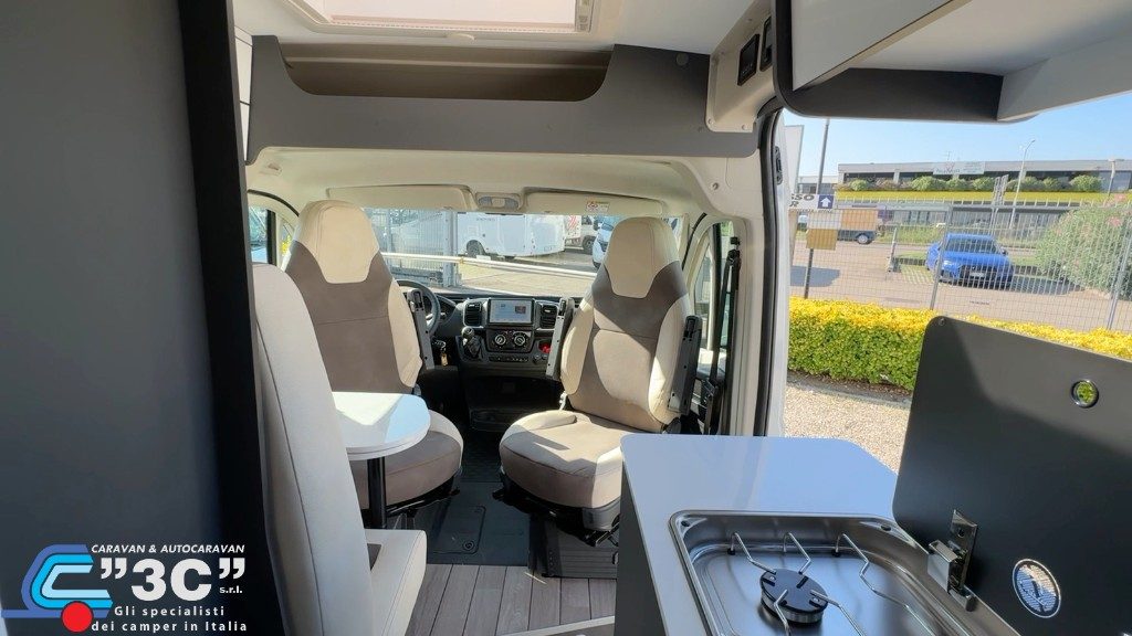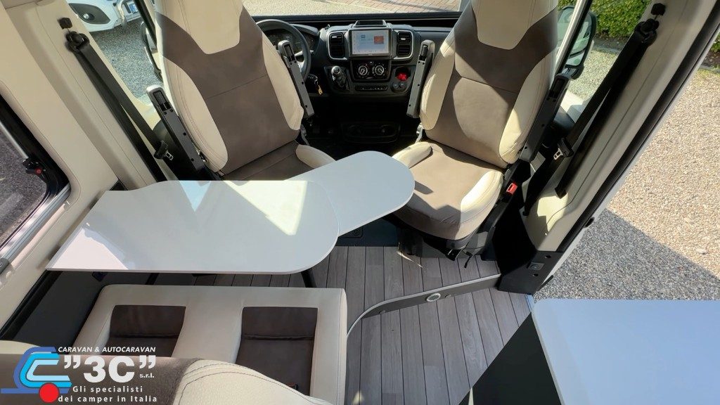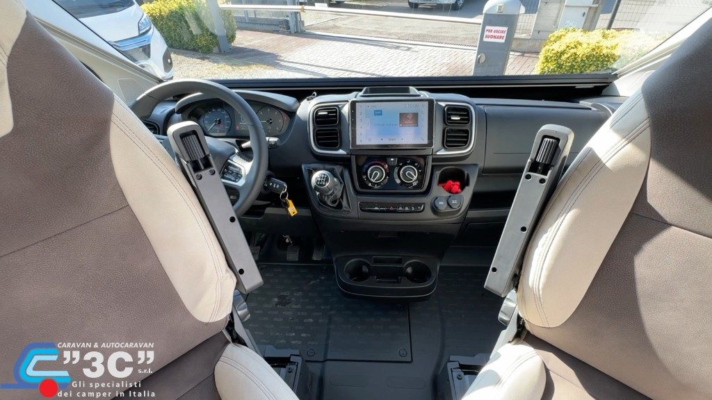 Pack Drive COMPRESO: Covers, Luce da esterno, Pannello di controllo CP Plus, Oblò Midi Heki (700×500) zona dinette (escluso modello 7), Zanzariera su porta scorrevole, Gradino di accesso elettrico, Oscuranti cabina plissettati.