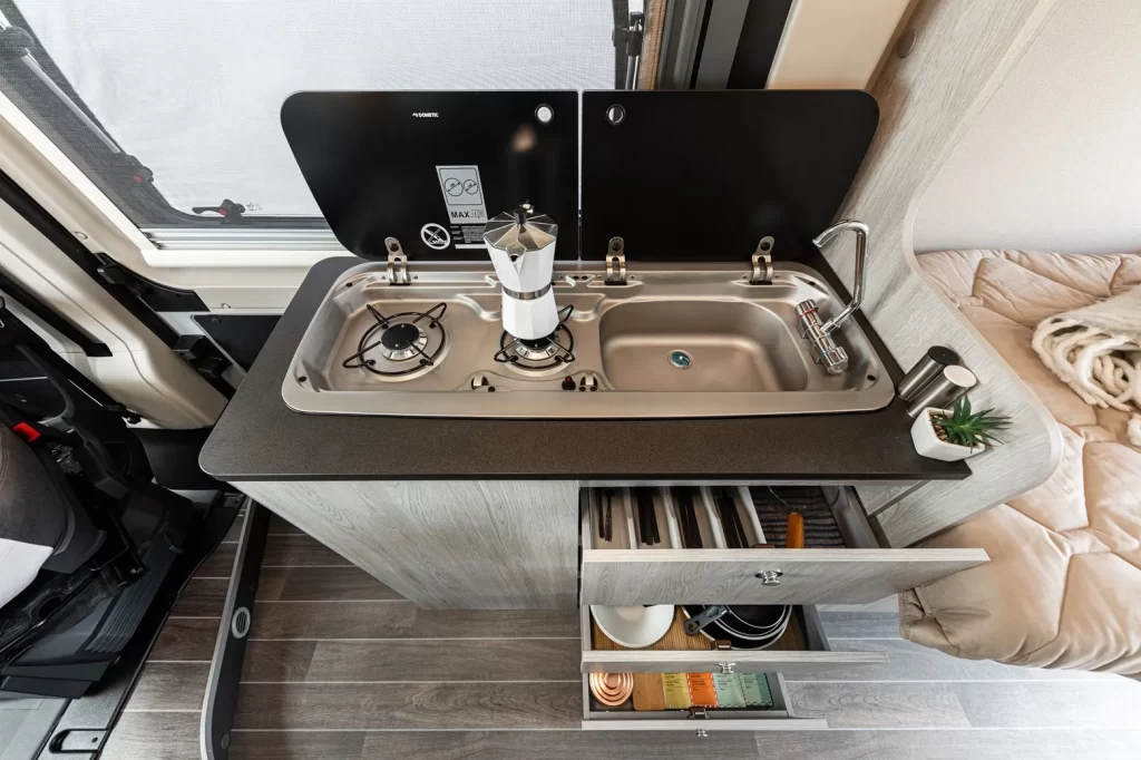 Menfys 6 MAXI il van ideale per chi cerca un veicolo con grande capacità di stivaggio e bagno compatto.