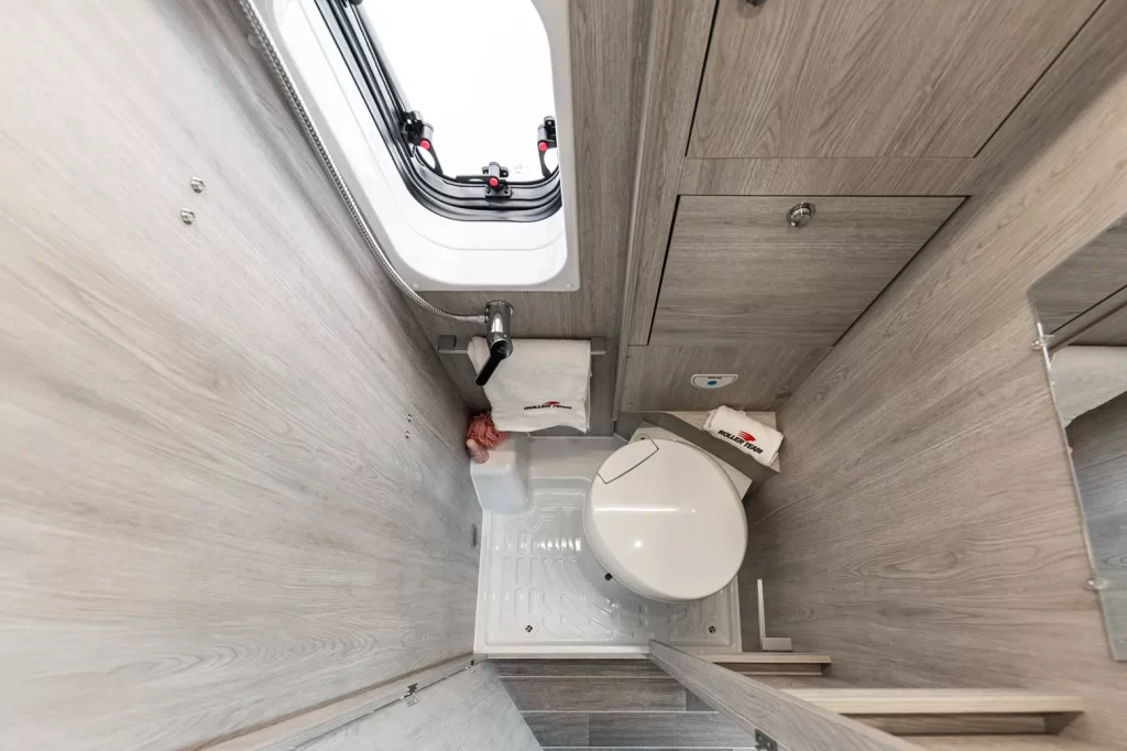 · 5,99 metri di lunghezza · Letto matrimoniale basculante longitudinale · Toilette compatta con