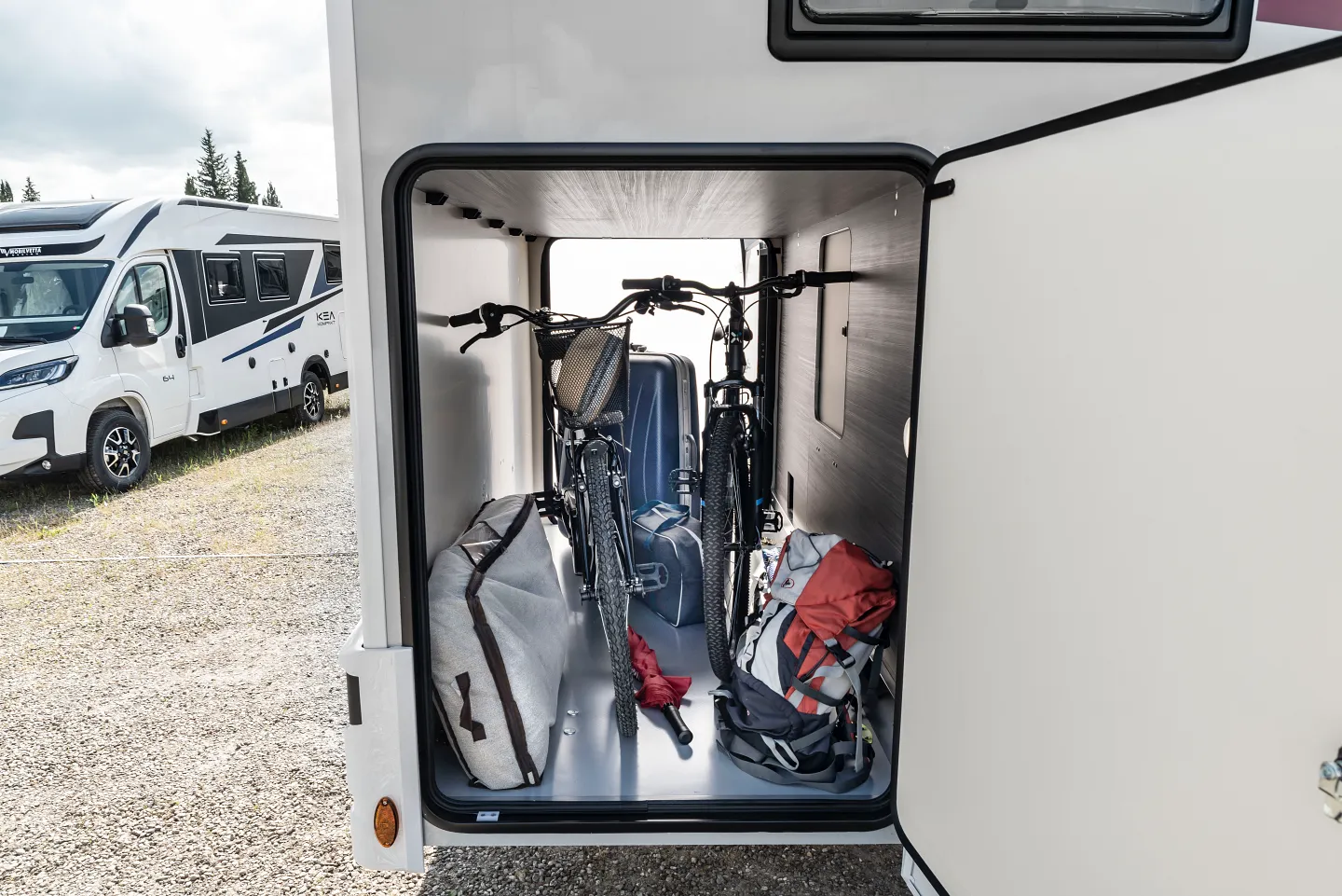 · Integrale 7,45 metri di lunghezza · Letto posteriore centrale · Toilette con doccia