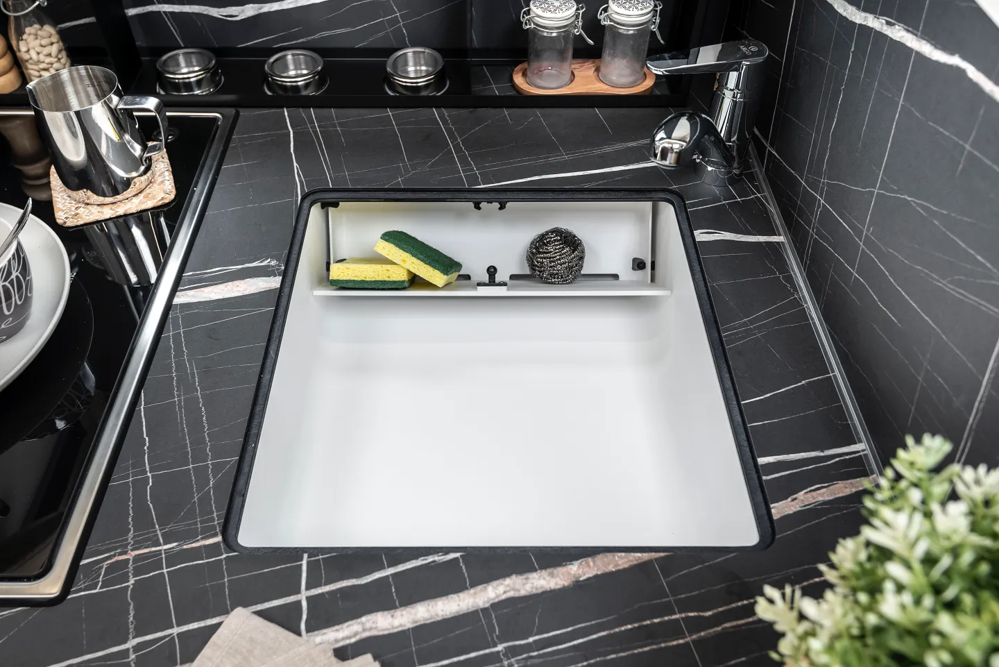 Supporto per oggetti visibili lungo tutta la lunghezza del bagno