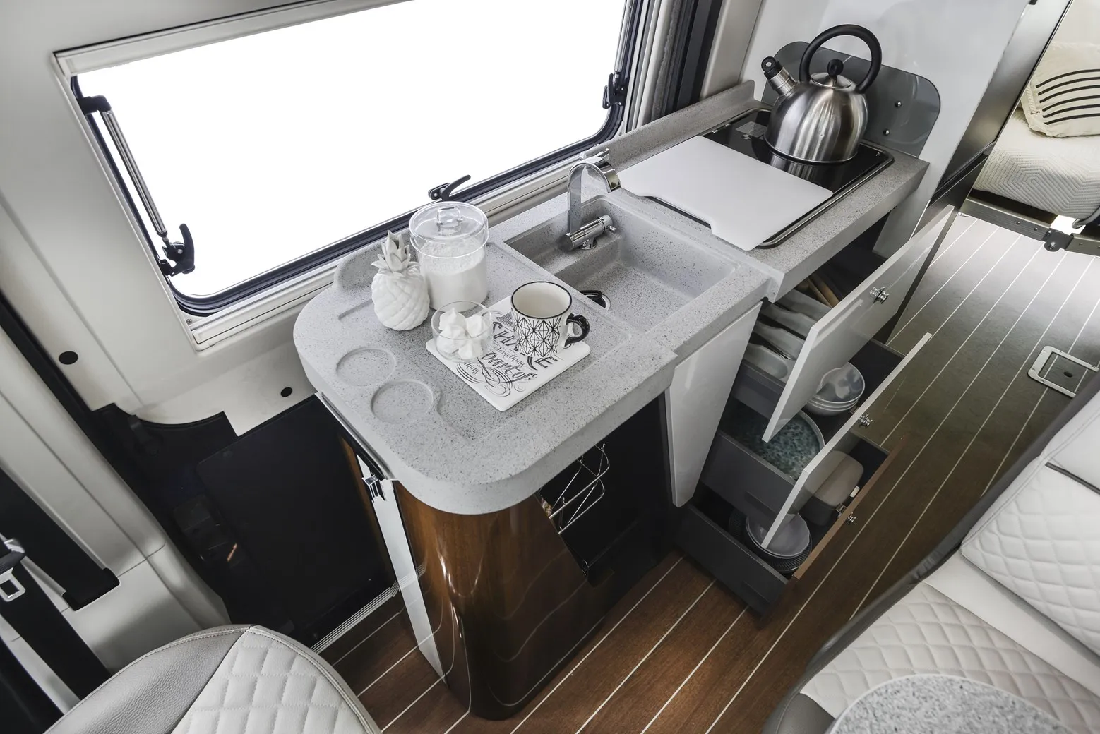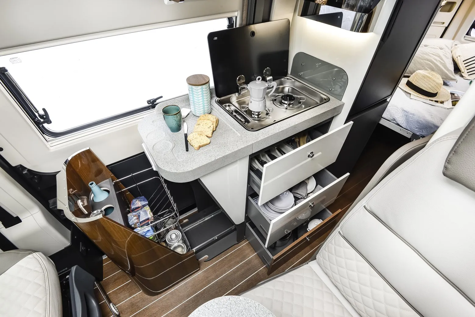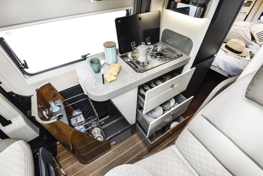 Il Van Mobilvetta Admiral K 5.1, è progettato per ospitare fino a 4 persone, offrendo 2 posti letto. Dimensionato a 599cm di lunghezza, 205cm di larghezza e 265cm di altezza, con un peso di 3500 kg, assicura un ottimo equilibrio tra spazio interno e maneggevolezza. Con meccanica Fiat, trazione Anteriore, cambio Manuale con 6 rapporti, alimentazione Diesel da 140 o 180 CV di potenza, garantisce viaggi lunghi, comodi e sicuri.