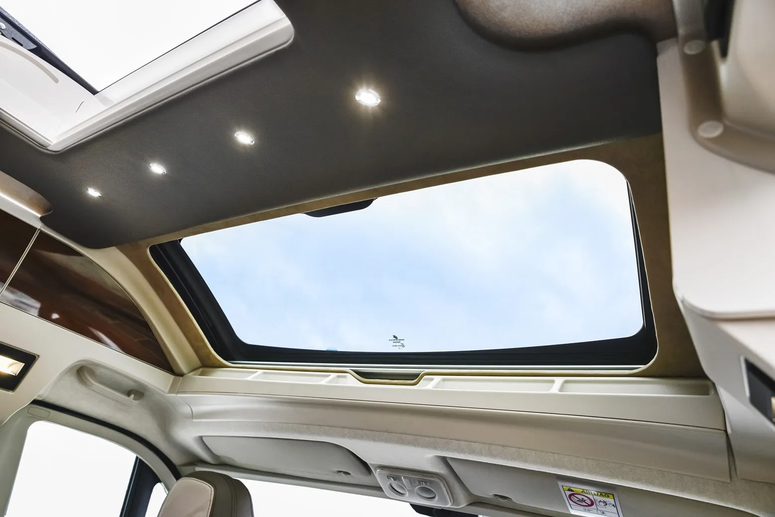 Ambiente luminoso e salubre: Skydome e oblo panoramico integrati, con zanzariera e oscurante. Luci a LED ambiente.