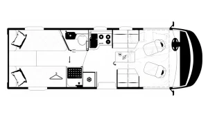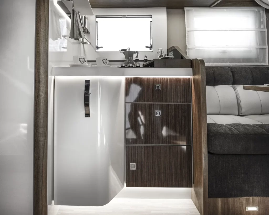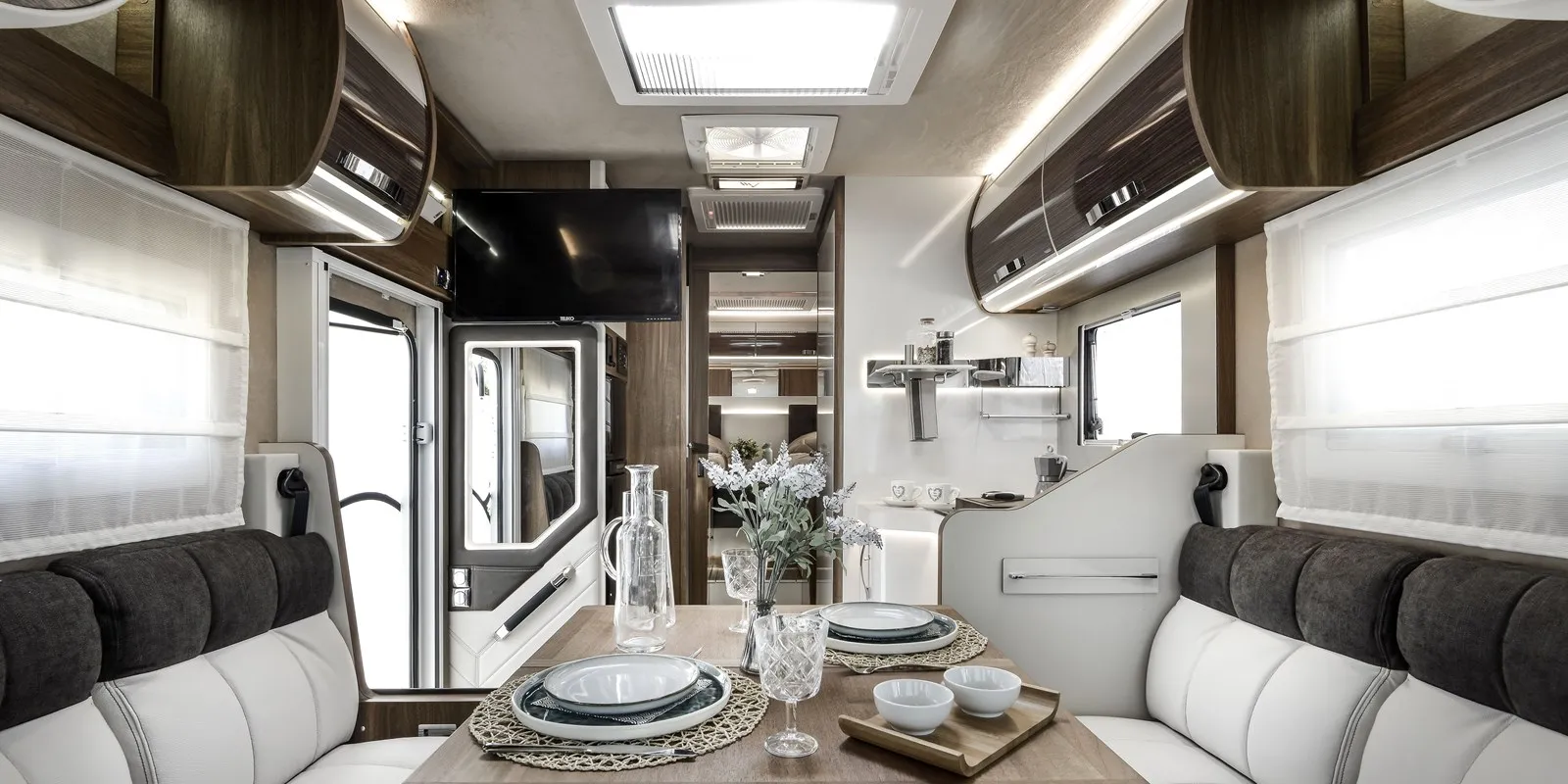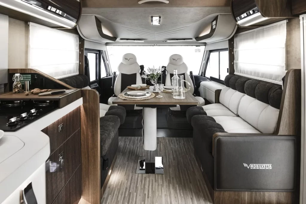 K-Yacht Tekno Line 86 motorhome con maxi letti gemelli, ambienti separati e un grande soggiorno face to face.