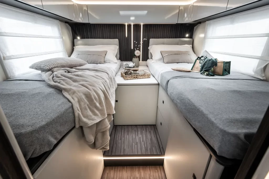 Kea P 86 semintegrale con letti gemelli, 7,47 metri, con grande salone face to face.