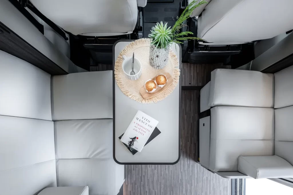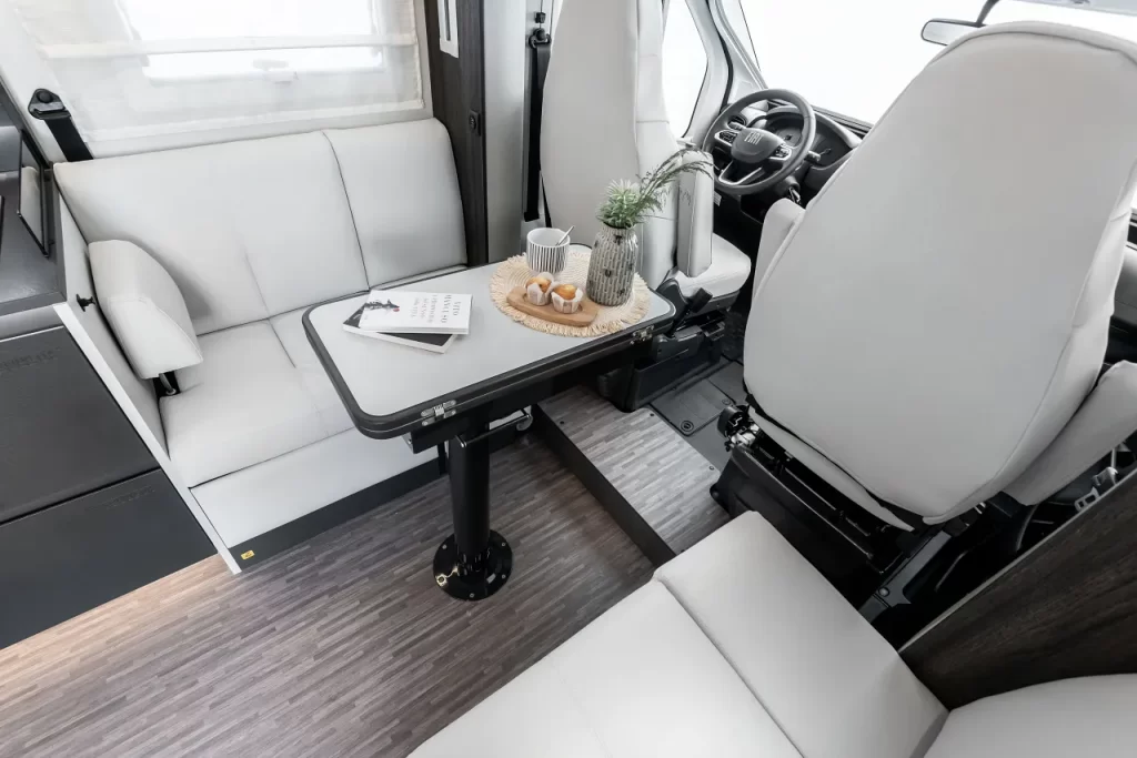 I sedili cabina, si ruotano per integrarsi in un salotto.