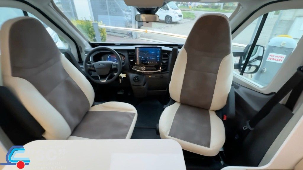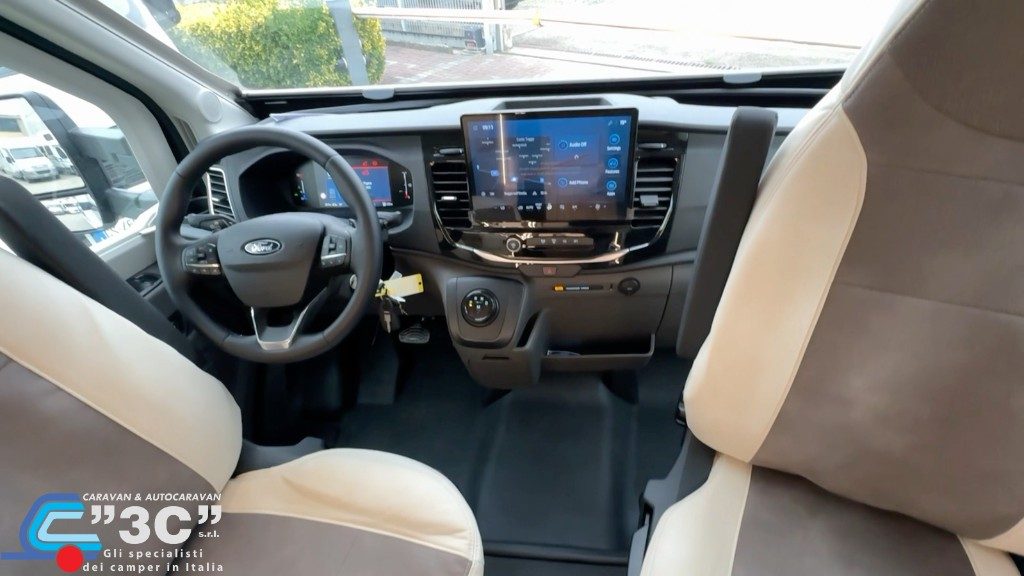 Pack ford COMPRESO: Ford Transit 2.0 l 165CV, Fari "High Series" con luci di svolta statiche, Vano portaoggetti con serratura, Finiture cruscotto e "Trend", Paraurti e modanature laterali verniciati in tinta con la carrozzeria, Porta Cellula con 2 punti di chiusura, con finestra e chiusura centralizzata, Pannello solare da 200W con regolatore MPPT, Oscuranti cabina plissettati, Braccio di supporto TV , Coprisedili cabina.