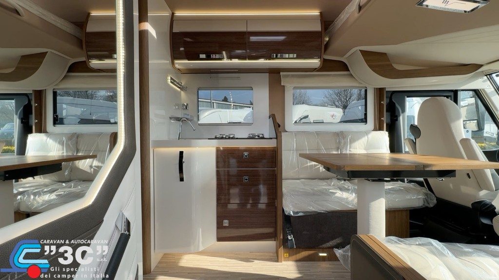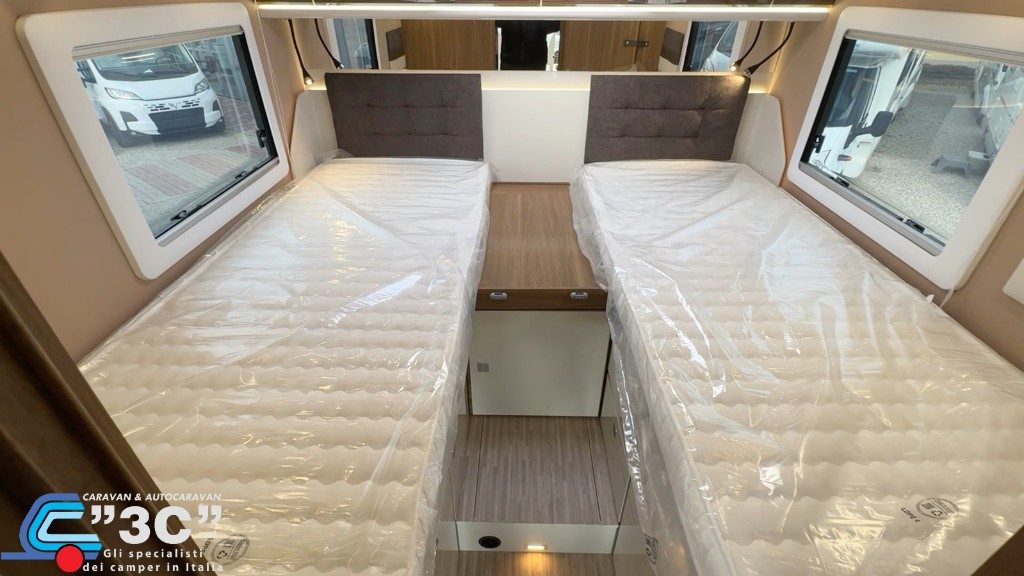 HAI UNA PERMUTA ? Nessun problema, la ritiriamo! Richiedi la valutazione.Data immatricolazione: NuovoTipologia: CamperCategoria: MotorhomeLunghezza (cm): 750Larghezza (cm): 235Altezza (cm): 298Doccia separata: SiGarage: SiKM: NuovoChiavi di scorta: SiTrasmissione: AnterioreCambio: AutomaticoMeccanica: Fiat DucatoPotenza(cv): 180Posti letto: 4Posti omologati: 4Peso a pieno carico (kg): 3500NOTE:Al prezzo esposto vanno aggiunti:2000€ per trasporto immatricolazione e messa su strada2000€ per pack vision stereo touch + retrocamera640€ per riscaldamento 6D5650€ per meccanica Fiat da 180cv e cambio automatico