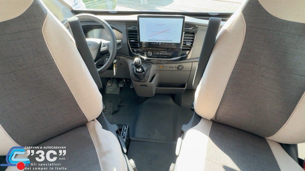 3600€ per pack Ford: meccanica da 165cv, Fari "High Series" con luci di svolta statiche, Vano portaoggetti con serratura, Finiture cruscotto "Trend", Paraurti e modanature laterali verniciati in tinta con la carrozzeria, Porta Cellula con 2 punti di chiusura, con finestra e chiusura centralizzata, Pannello di controllo CP-Plus, Coperchio lavello/tagliere, Pannello solare da 200W con regolatore MPPT, Tetto apribile, Oscuranti cabina plissettati, Coprisedili cabina.