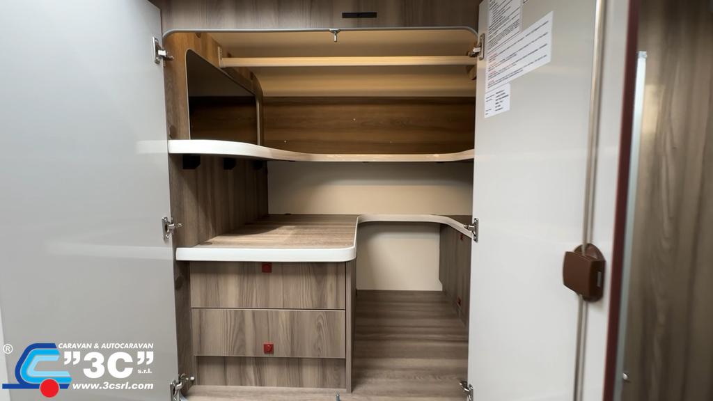3850.00 € | Motore 165 CV, Fari "High Series" con luci di svolta statiche, Vano portaoggetti con serratura, Finiture cruscotto e "Trend", Paraurti e modanature laterali verniciati in tinta con la carrozzeria, Porta con 2 punti di chiusura, con finestra e chiusura centralizzata, Pannello solare da 200W con regolatore MPPT, Pannello di controllo CP-Plus, Tetto apribile, Coperchio lavello, Coprisedili cabina, Oscuranti cabina plissettati.