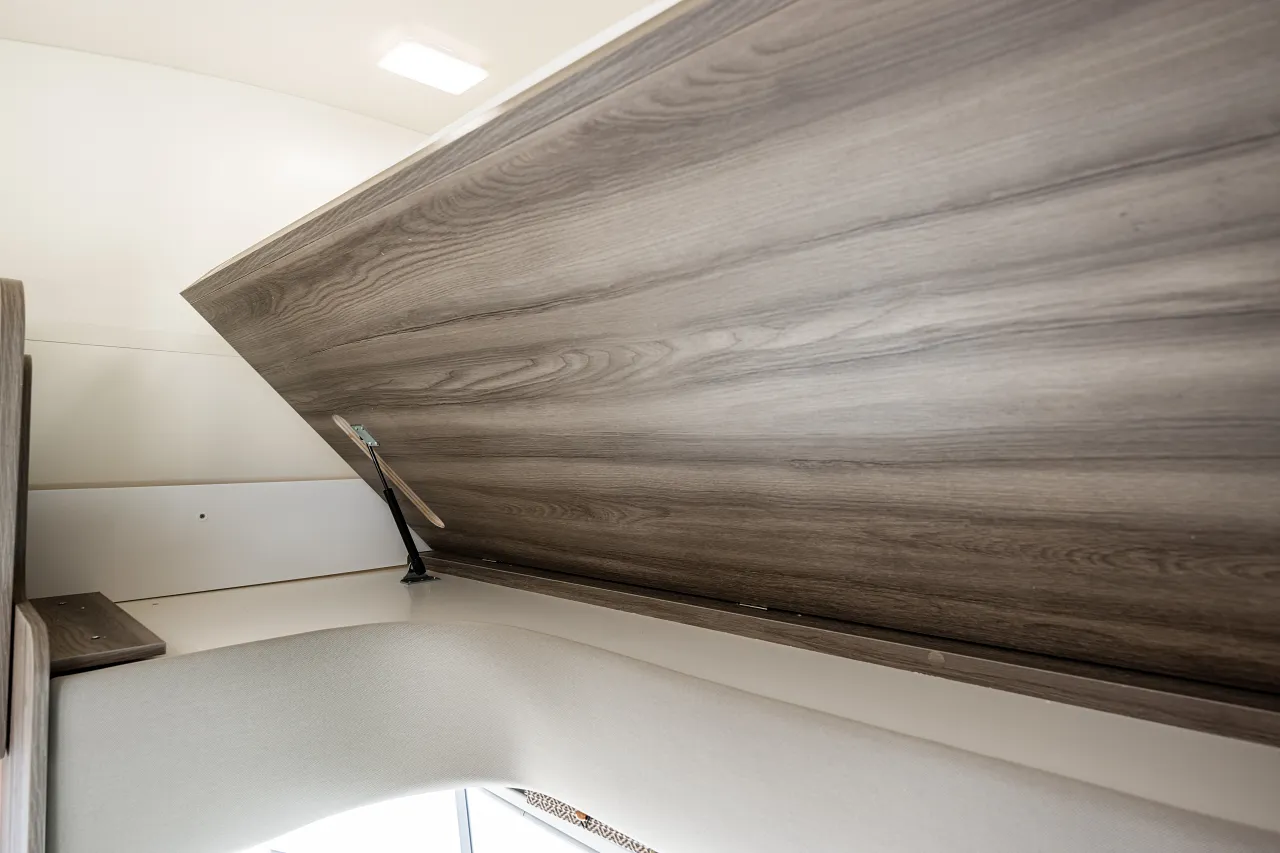 – Spessore del pavimento: 54 mm – Spessore del soffitto e delle pareti: 30 mm – Tetto esterno in vetroresina – Pareti interne/esterne in vetroresina – Area inferiore del telaio rivestito in vetroresina”