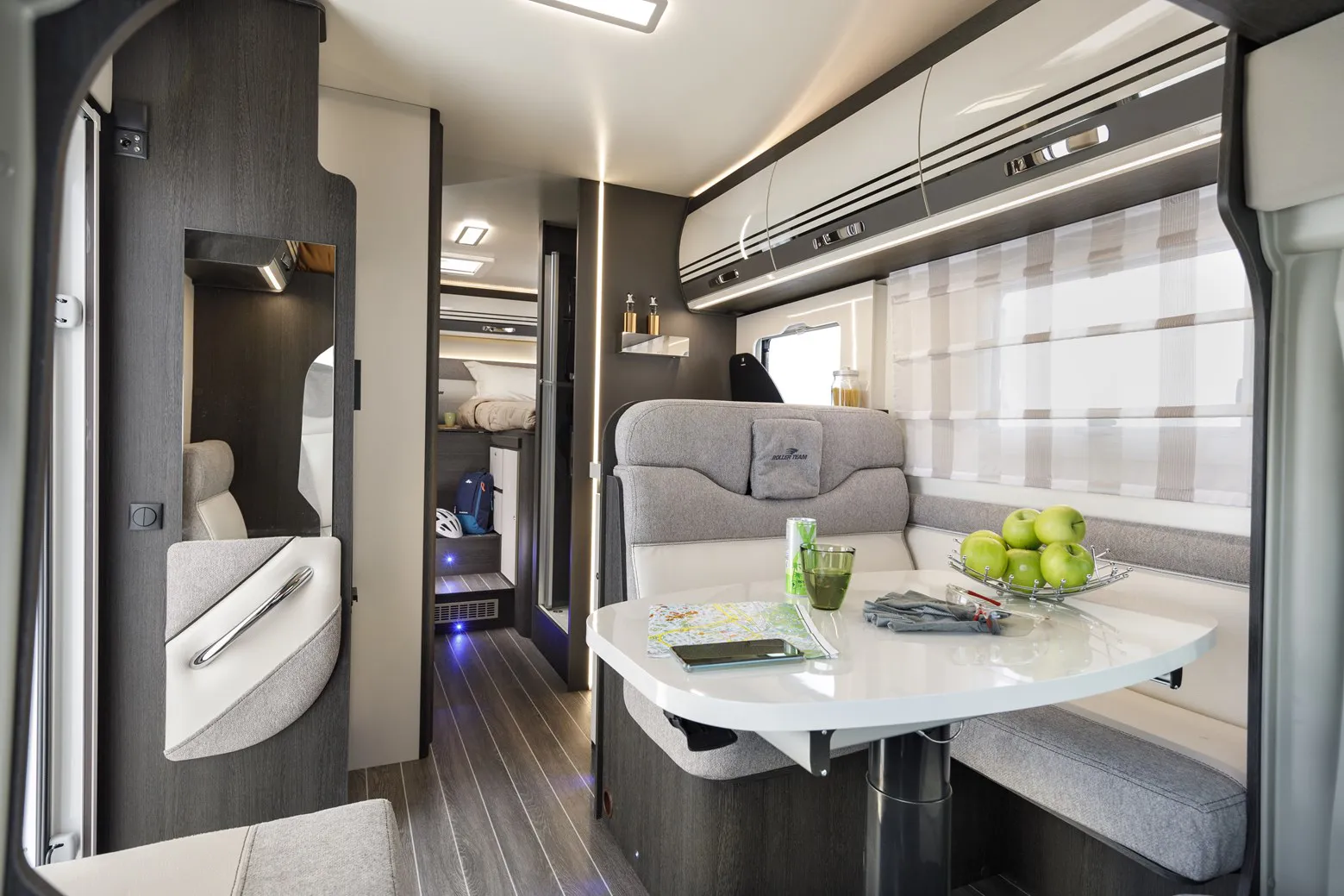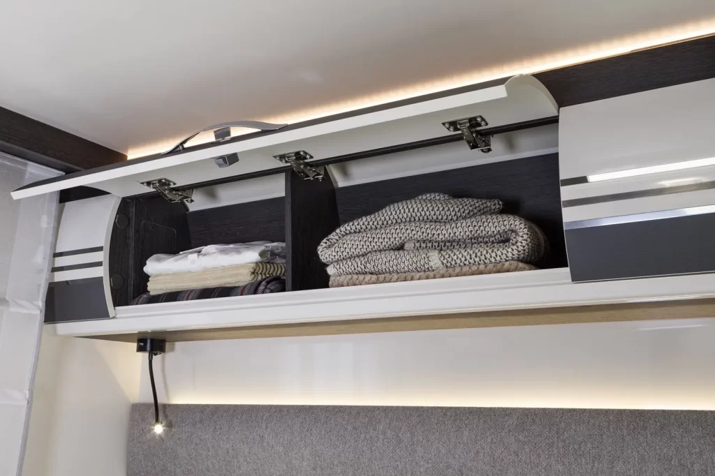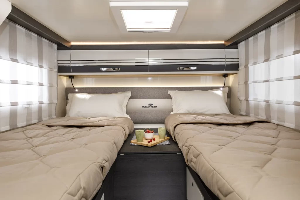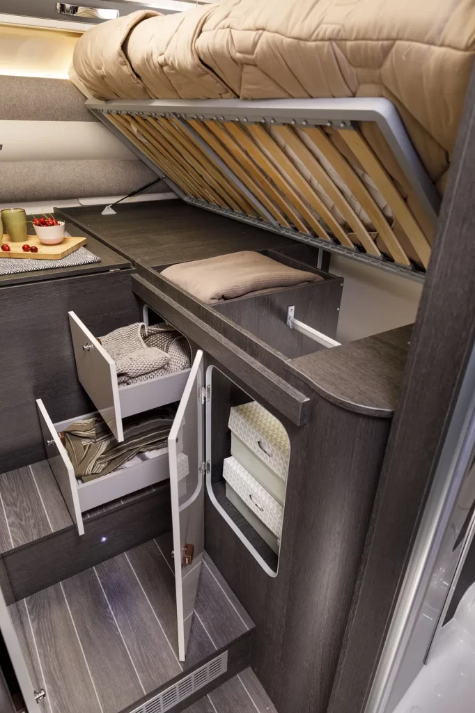 Trasformazione della dinette in un letto trasversale.