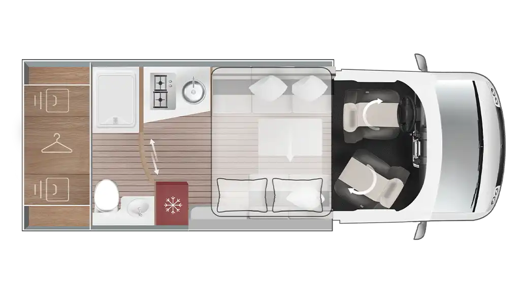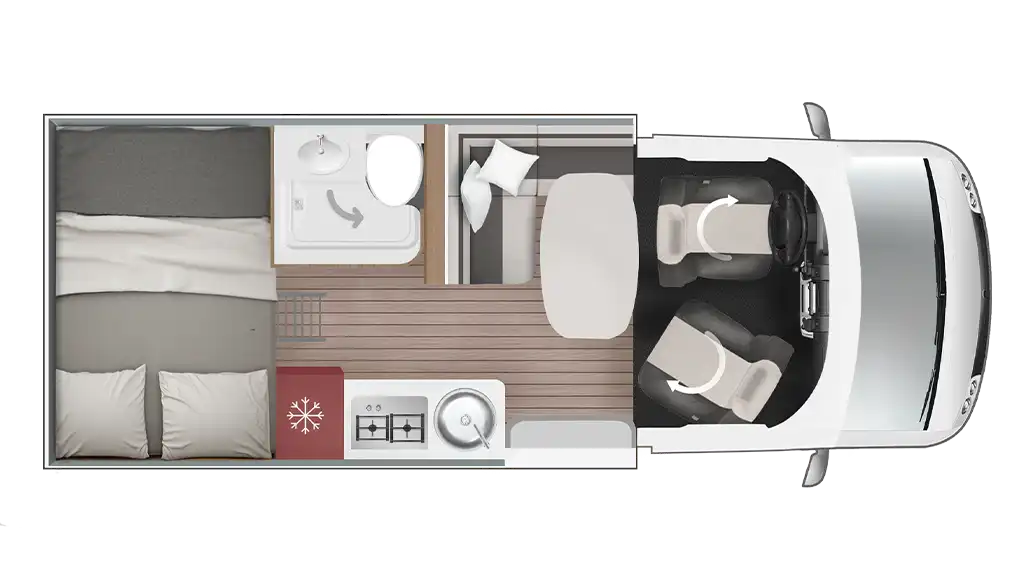 Pensato per soddisfare le esigenze delle coppie e dei piccoli equipaggi desiderosi di esplorare il mondo, Kronos Fit è anche l’opzione perfetta per coloro che si avvicinano per la prima volta al mondo del camper.
