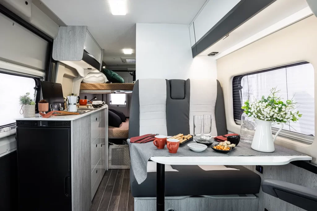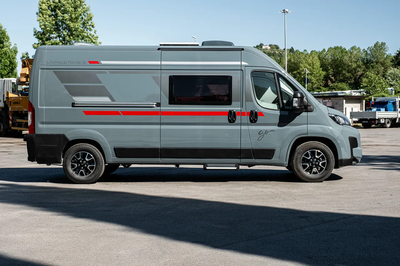 Il Van Roller Team Livingstone GO 5, è progettato per ospitare fino a 4 persone, offrendo 4+1 posti letto. Dimensionato a 599cm di lunghezza, 205cm di larghezza e 265cm di altezza, con un peso di 3500 kg, assicura un ottimo equilibrio tra spazio interno e maneggevolezza. Con meccanica Citroen, trazione Anteriore, cambio Manuale con 6 rapporti, alimentazione Diesel da 140|180 CV di potenza, garantisce viaggi lunghi, comodi e sicuri.