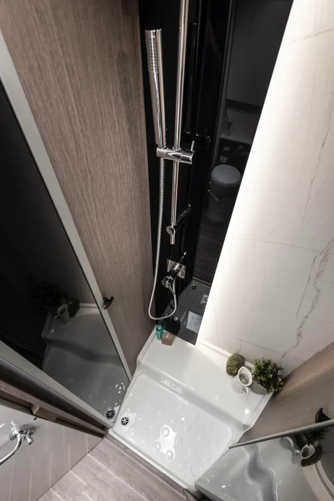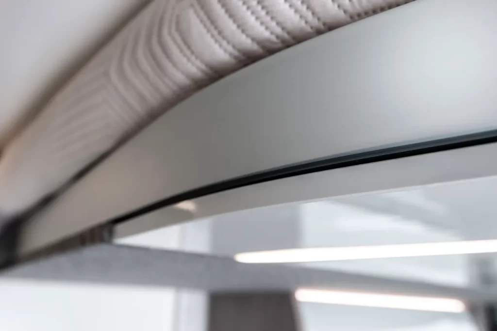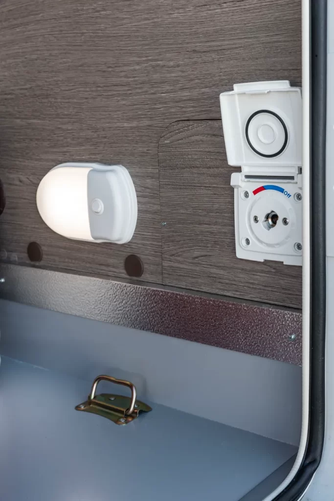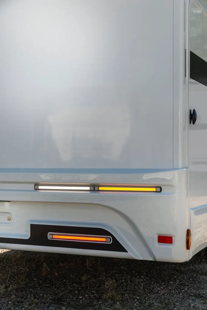 – Spessore del pavimento: 54 mm – Spessore del soffitto e delle pareti: 30 mm – Tetto esterno in vetroresina – Pareti interne/esterne in vetroresina – Area inferiore del telaio rivestito in vetroresina”